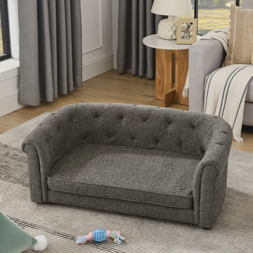Modern Dog Sofa Pet Sofa With Button Tufted Backrest And Breathable Linen And Stain Resistant Fabric For Medium Large Pets - Dark Gray