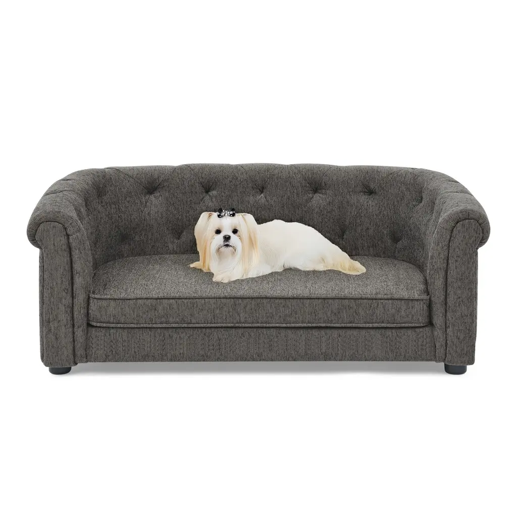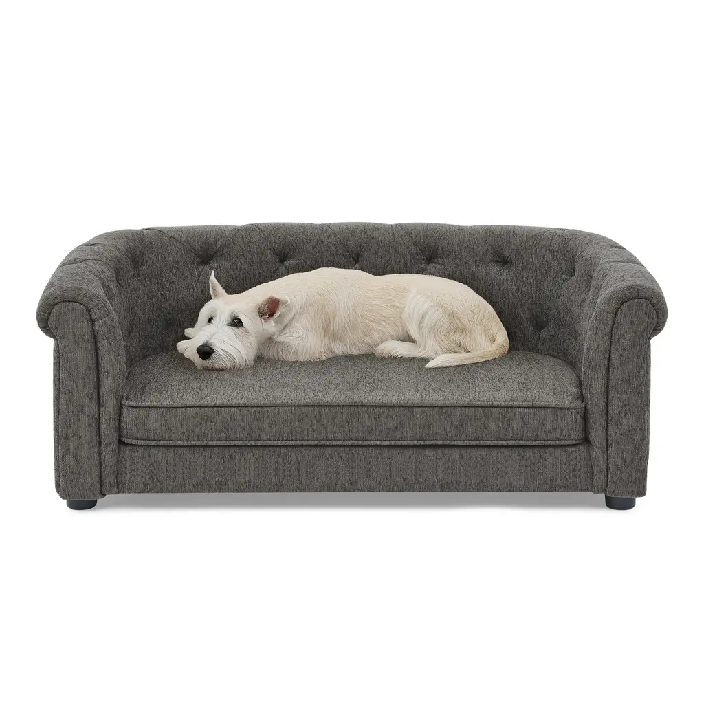 Description:Treat your medium to large dog to a blend of timeless style and everyday comfort with this modern pet sofa. Featuring a button-tufted backrest and curved armrests, it offers ergonomic support in durable, breathable linen upholstery. The dark grey hue and sleek design effortlessly complement contemporary decor, while thick padding and scratch-resistant fabric ensure lasting coziness for playful pets. Easy to clean and built to withstand daily use, it’s a functional yet chic retreat for dogs up to 38” long.Features: