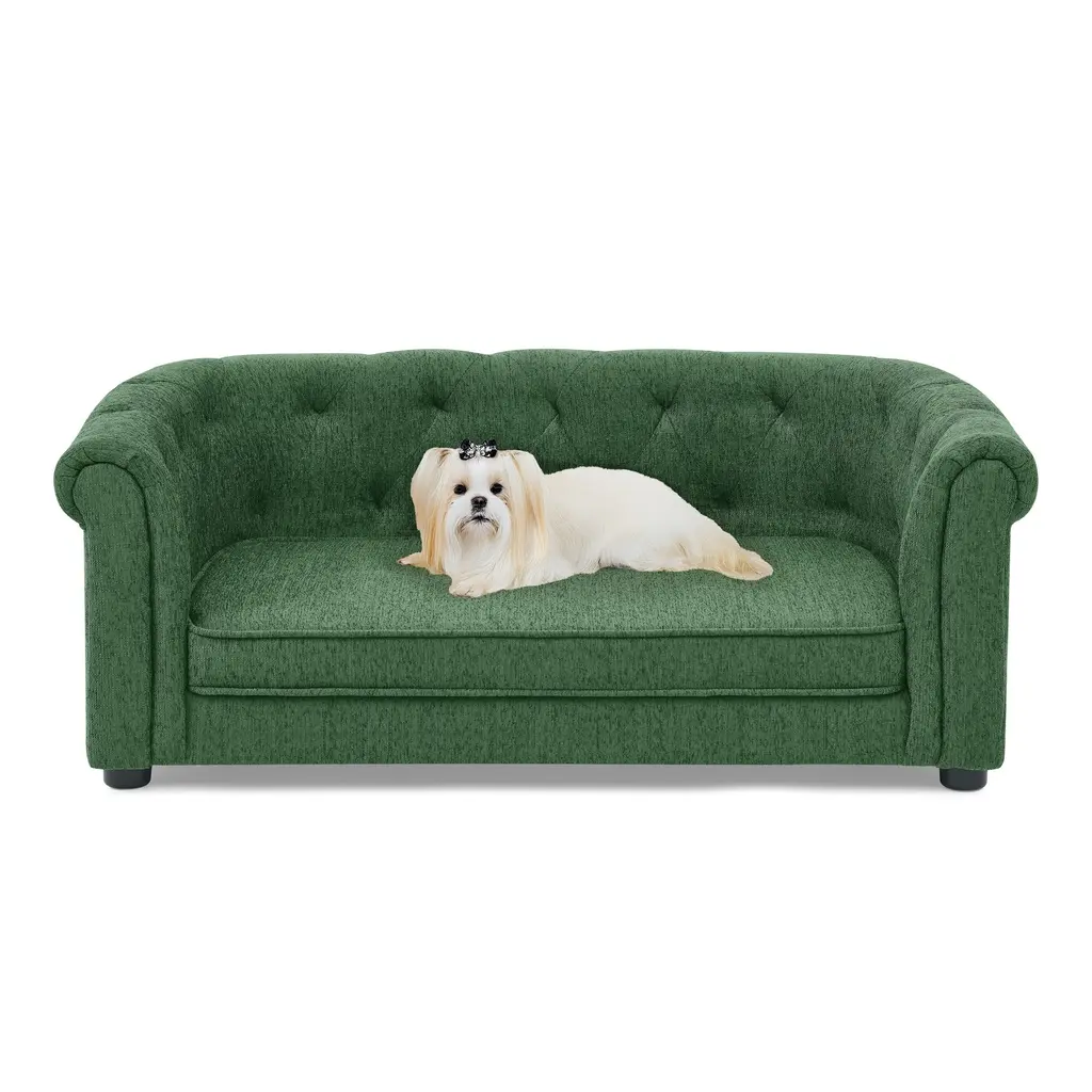Modern Dog Sofa Pet Sofa With Button Tufted Backrest And Breathable Linen And Stain Resistant Fabric For Medium Large Pets - Green
