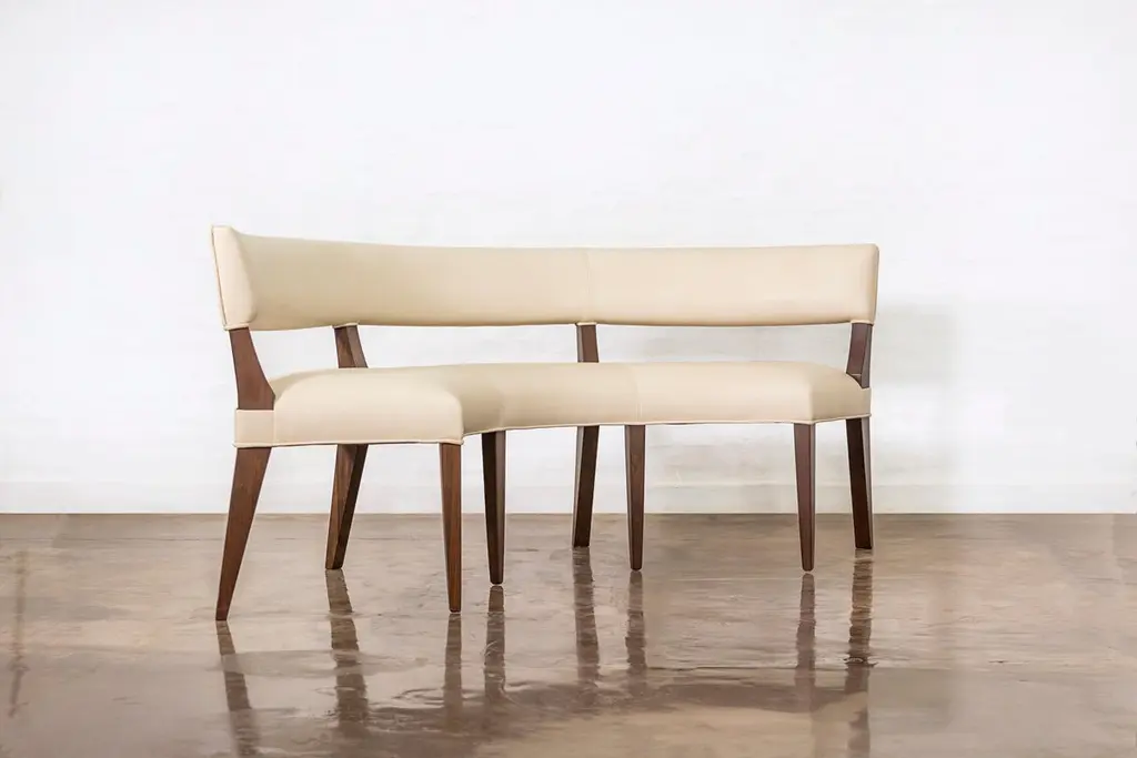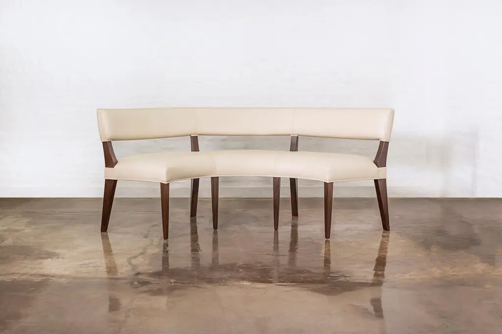 Costantini prides itself in using the hardest and most beautiful hardwoods in the construction of its line of seating. Any of its standard chairs can be made into a booth, by repeating the back leg and building the rest of the structure to your specifications. The Bruno Booth thus borrows the styling from the chair of the same name, and can be made with a tight or loose seat. Available in several standard leathers as well as COM/COL. Measurements are: 84" W x 21" D x 32" H x 18” SH (depth is seat only, radius will be adjusted to account for table). Other materials available are Argentine Rosewood, Oak, Walnut, Maple, Cherry, Beech, Elm and Okume. Available in matte, semi-gloss, high gloss finish or lacquered. About Costantini DesignCostantini has been a trusted source for custom furniture, objects and lighting for a global client base since 2002. Its founder and owner, William Stuart, is a designer and artist who began his career as a multimedia artist and sculptor, practices which continue to inform the work. With a studio showroom in New York and a team of artisans at their own workshop in Buenos Aires, the Costantini team is able to connect artisans and artists with acclaimed clientele around the world. Its artisans work across many disparate materials such as bronze, solid wood, fiberglass, steel, plaster, goatskin, leather, rush, iron, marble, sheepskin and more. Visit their New York or Buenos Aires locations by appointment.