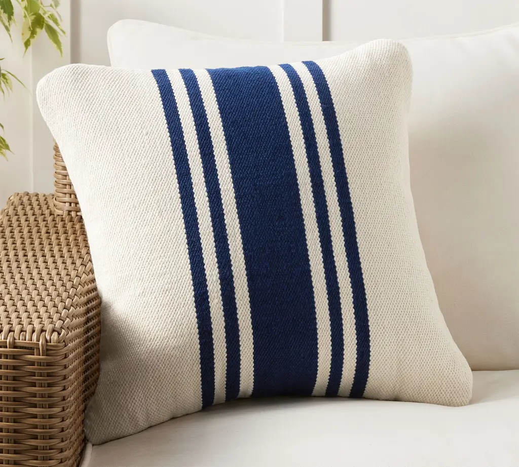 Cozy meets chic. Rustic handwoven textures and crisp stripes give this pillow a high-contrast look we love to layer in. It’s perfect for lounging around inside but practical (and durable) enough for your patio.
