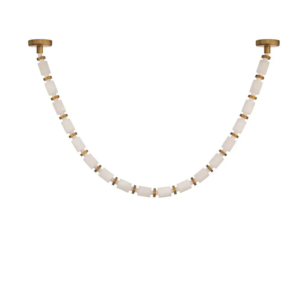 Timelessly tasteful. Cylinders of natural Spanish Alabaster and gleaming metallic collars ornament a silica strand, creating a gemlike presence.Features:Dimensions:Electrical Specifications: