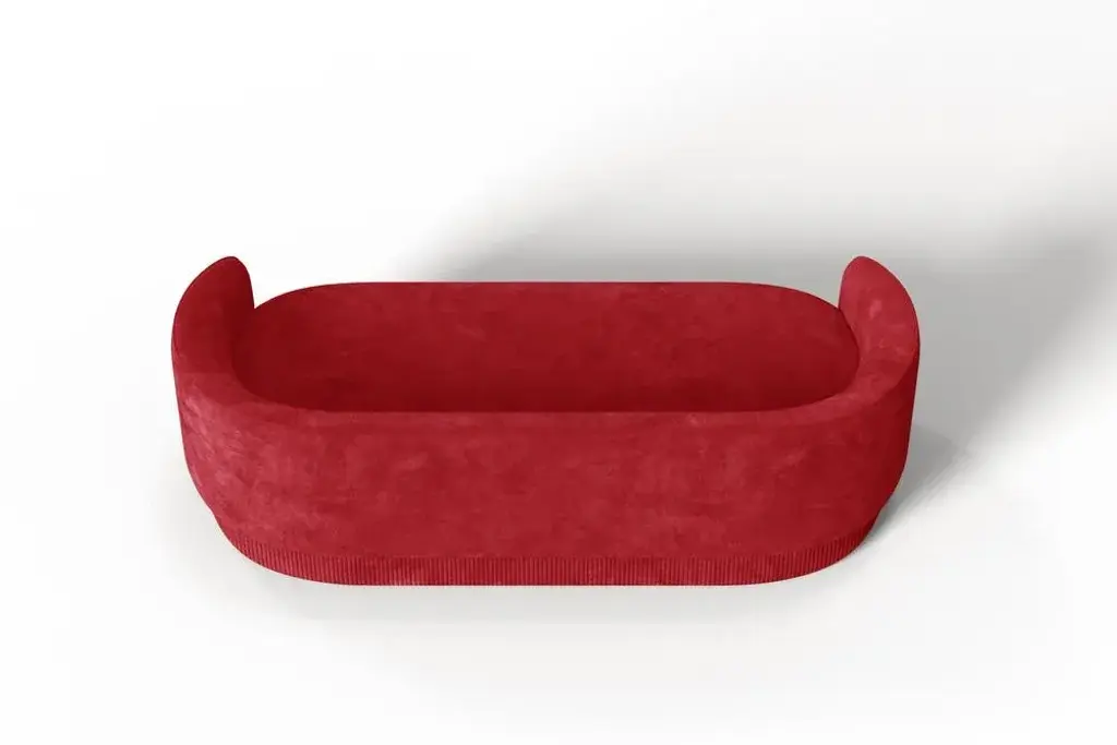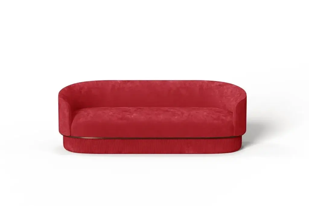 Modern Gentle Sofa In Red Velvet And Bronze Metal By Javier Gomez