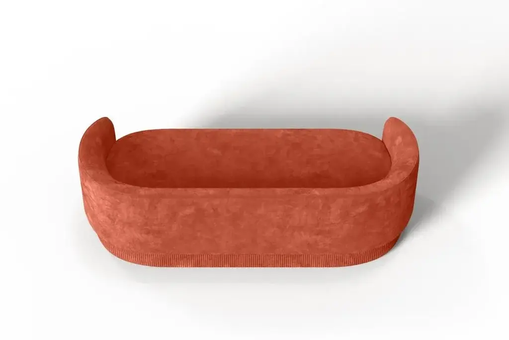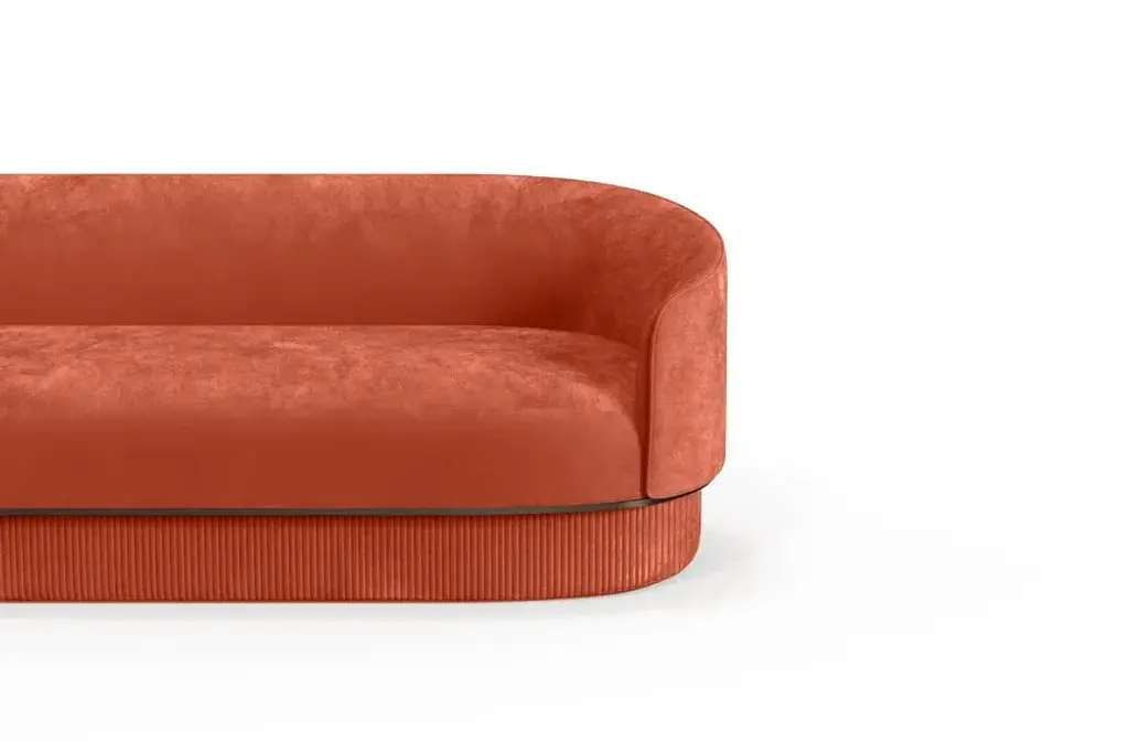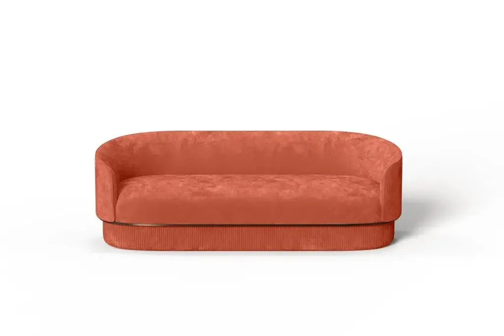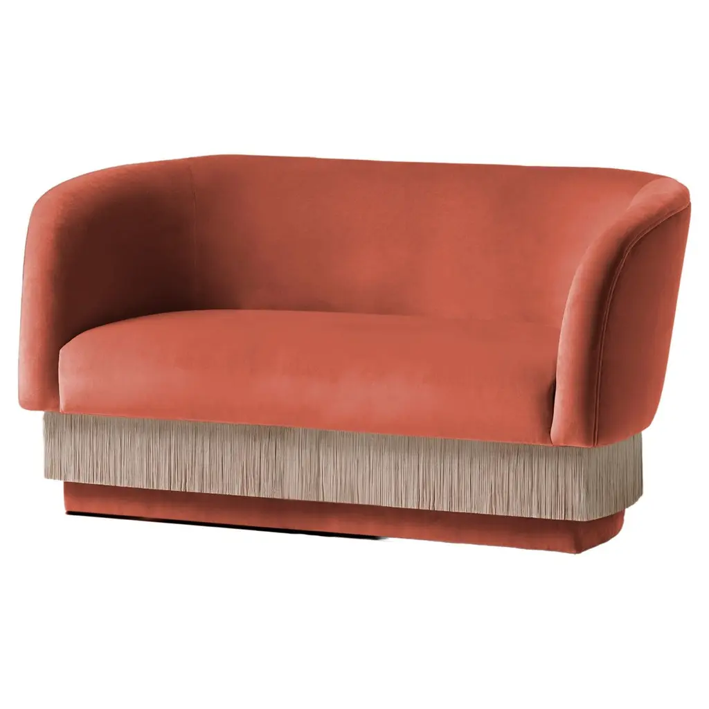 Modern Gentle Sofa In Salmon Velvet And Bronze Metal By Javier Gomez