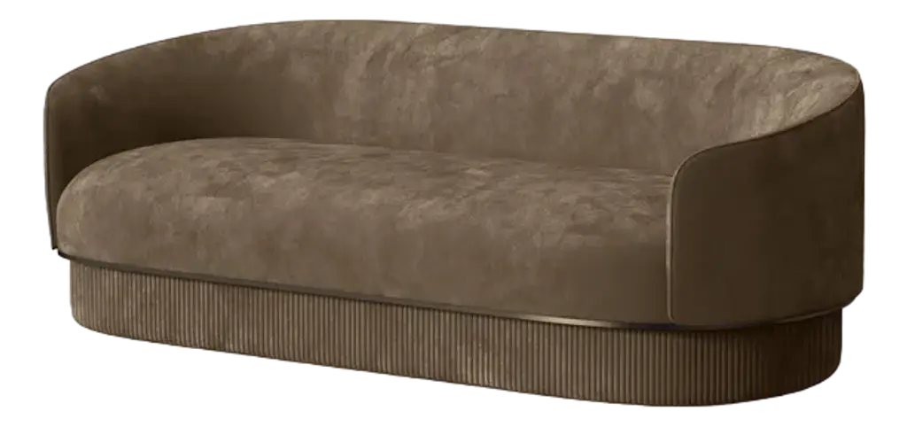 Gentle was born from the desire to combine a simple and comfortable shell with a decorated and characterizing base. In fact, the base is made of quilted leather with vertical stripes, giving a 3D effect to the product. The metal ring that divides the two parts marks a boundary between the 3D material and its smooth version. A line capable of reflecting light like a body of water capable of giving movement and distorting the reflected image.