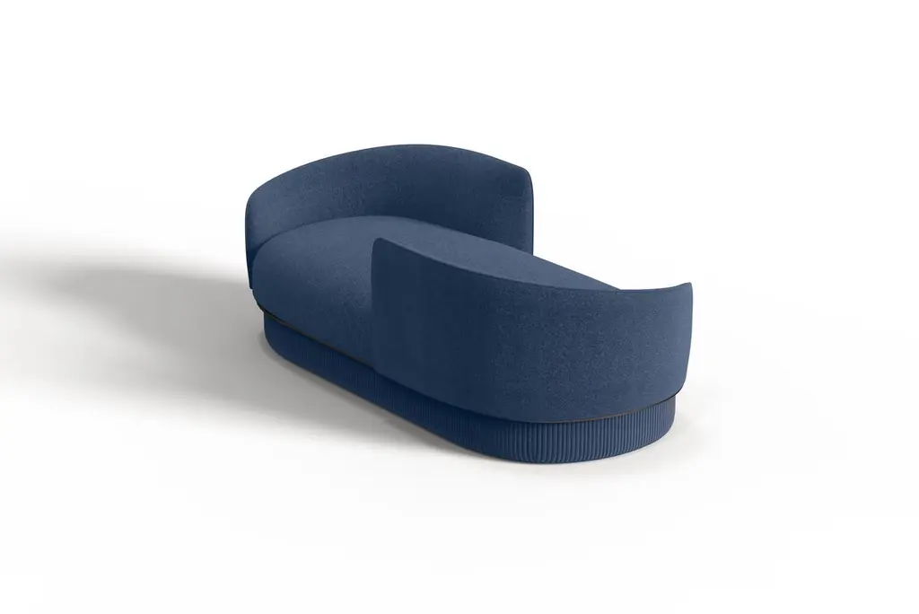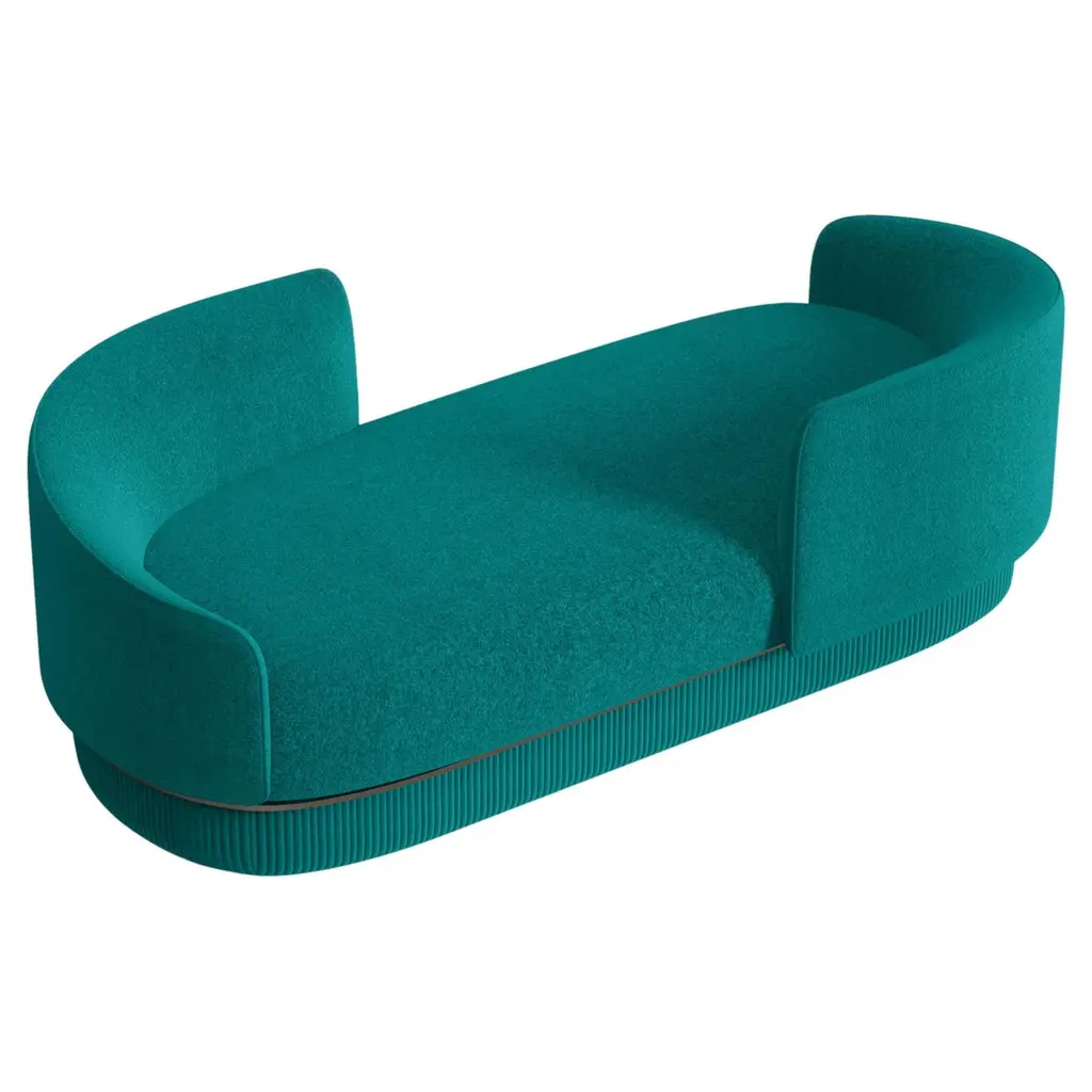 The Modern Gentle Vis-à-Vis blends comfort and refined craftsmanship, featuring a smooth, inviting shell contrasted by a quilted leather base with striking vertical stitching. A bronze metal ring elegantly separates these elements, creating a reflective accent that plays with light like rippling water. This sophisticated balance of textures and materials makes it a timeless statement piece for any contemporary space.The height and dimensions of each piece can be customized to suit your needs.