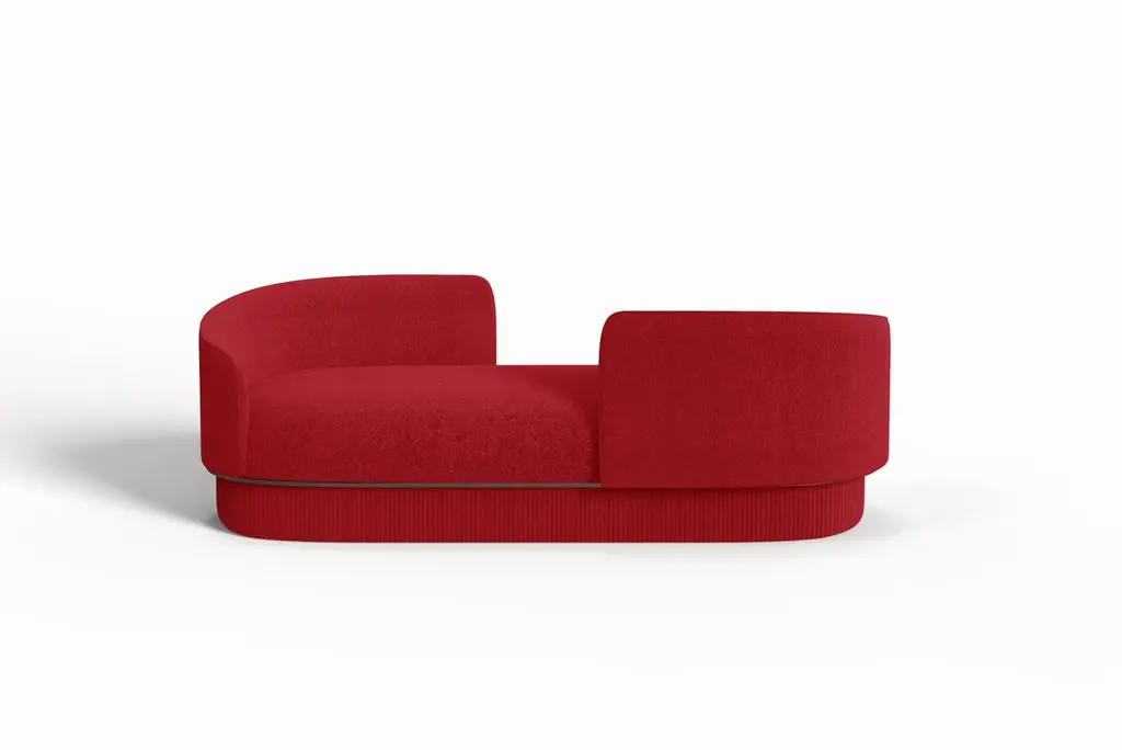 The Modern Gentle Vis-à-Vis blends comfort and refined craftsmanship, featuring a smooth, inviting shell contrasted by a quilted leather base with striking vertical stitching. A bronze metal ring elegantly separates these elements, creating a reflective accent that plays with light like rippling water. This sophisticated balance of textures and materials makes it a timeless statement piece for any contemporary space.The height and dimensions of each piece can be customized to suit your needs.