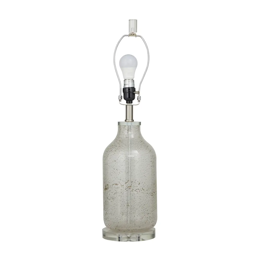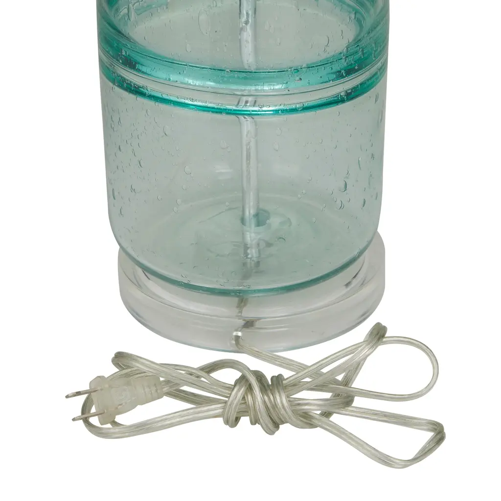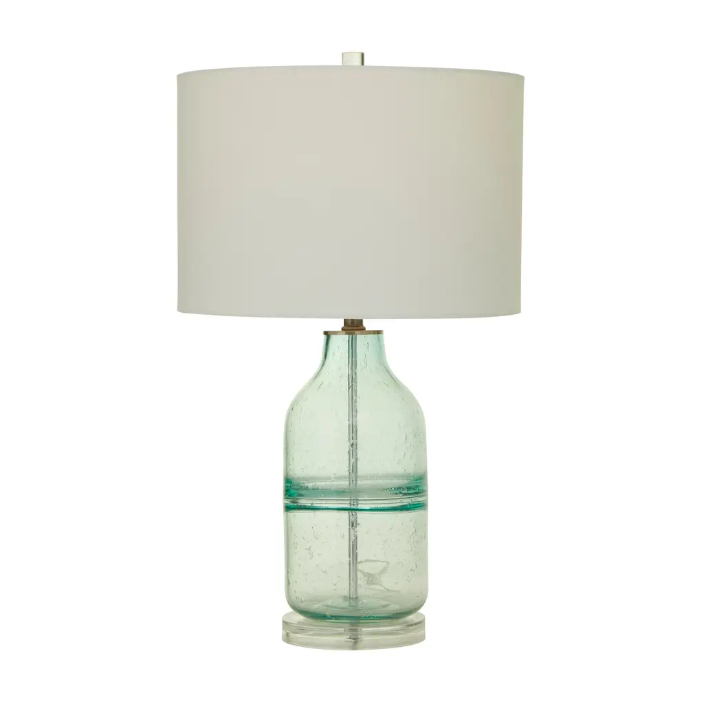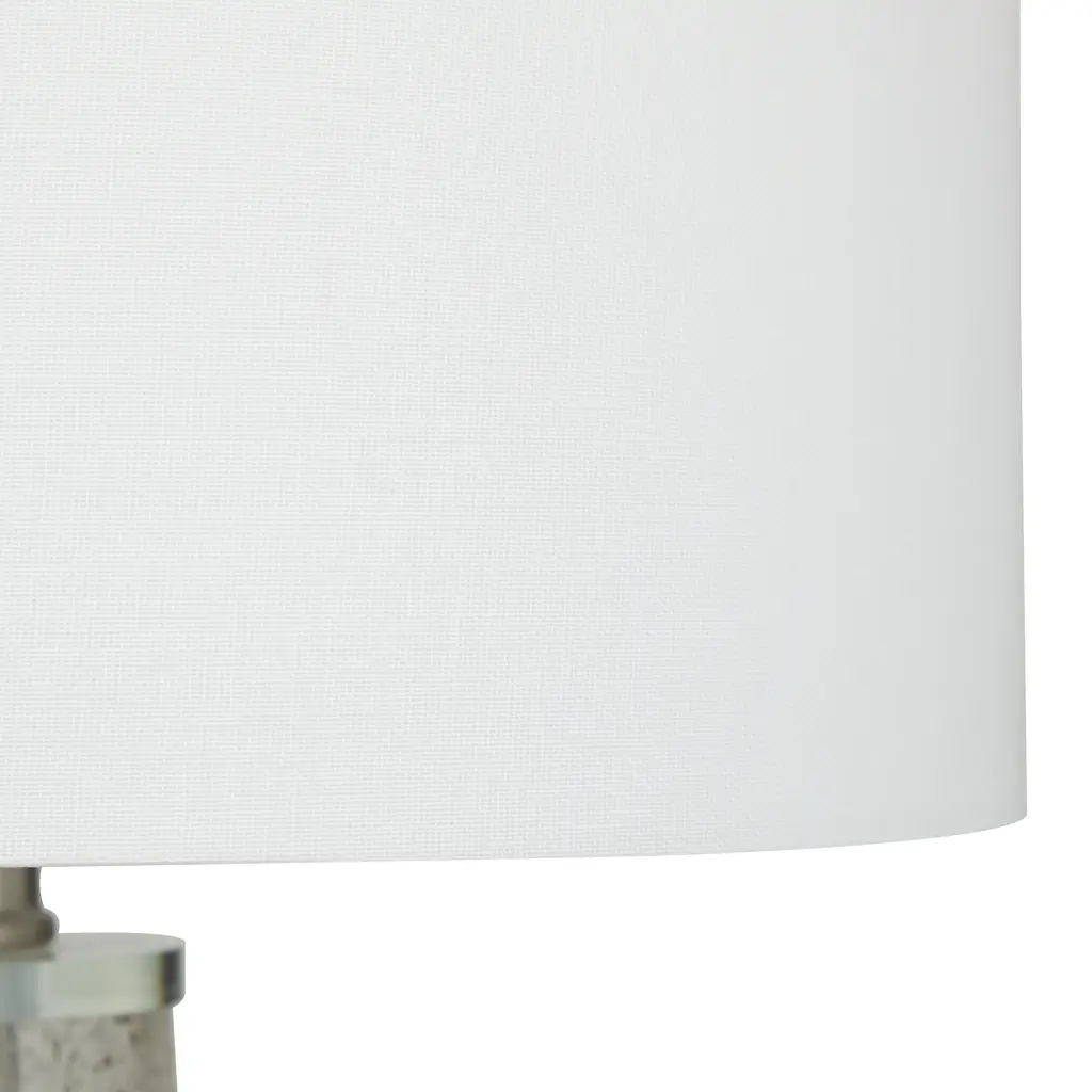 This eye catching lamp makes a stylish addition to your surface space and beautifully illuminate its surrounding area. Sturdy and long lasting construction for a solid display to brighten up any space. Table lamp is best appreciated on a round end table placed next to a sleek furniture for a chic style of home. Includes 1 60W Type A E26/Medium (Standard) bulb. This item ships in 1 carton. Comes with a 62" cord length. Suitable for indoor use only. This item ships fully assembled in one piece. Table lamp comes with a cream drum shaped shade that measures 15 x 15 x 12 inches. Includes a rotary switch. This gray or teal colored accent lamp comes as a set of 2. Modern style.
