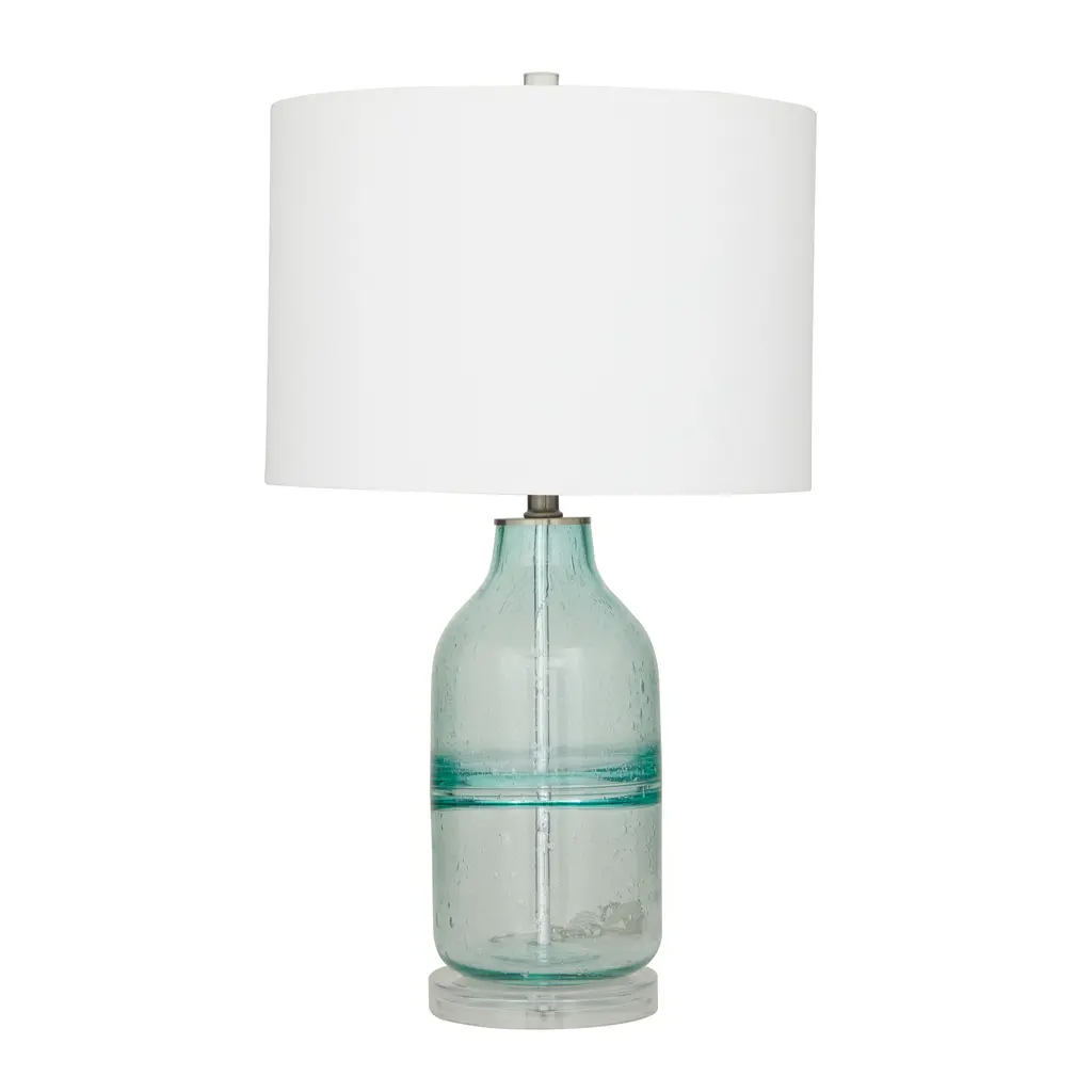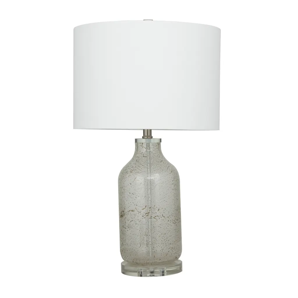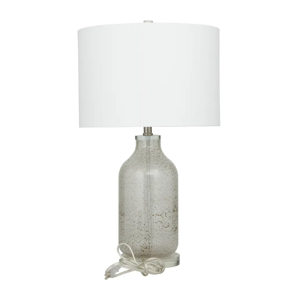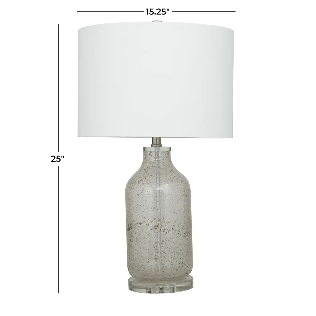 Modern Glass Textured Table Lamp With Drum Shade (Set Of 2) - Gray Or Teal - Gray