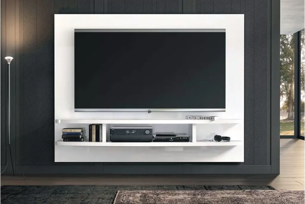 Modern Italian Wall Unit With High Gloss White Finishing