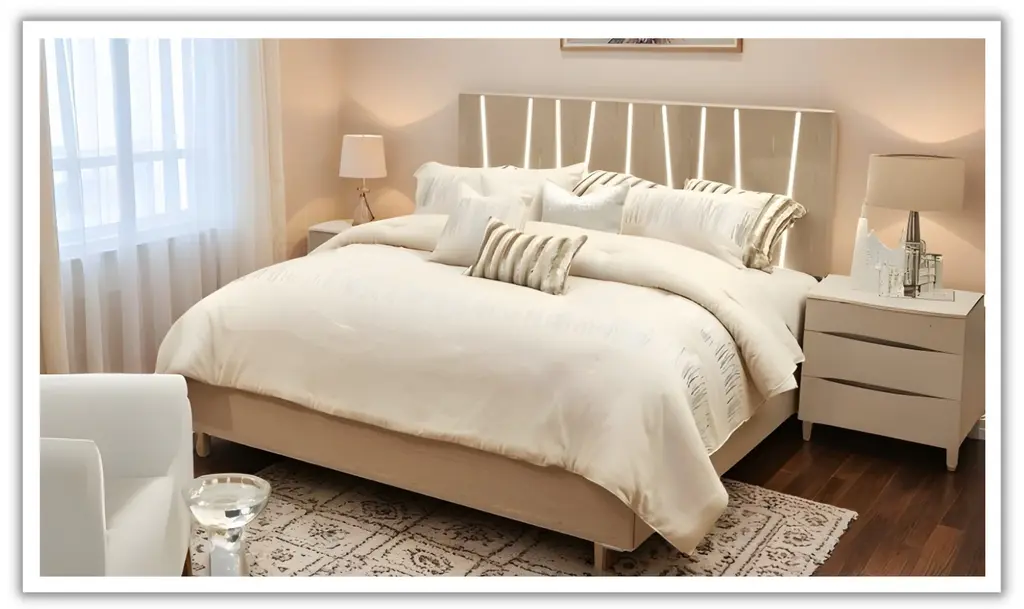Modern King Size Floating Bed Frame With Light & Adjustable Headboard