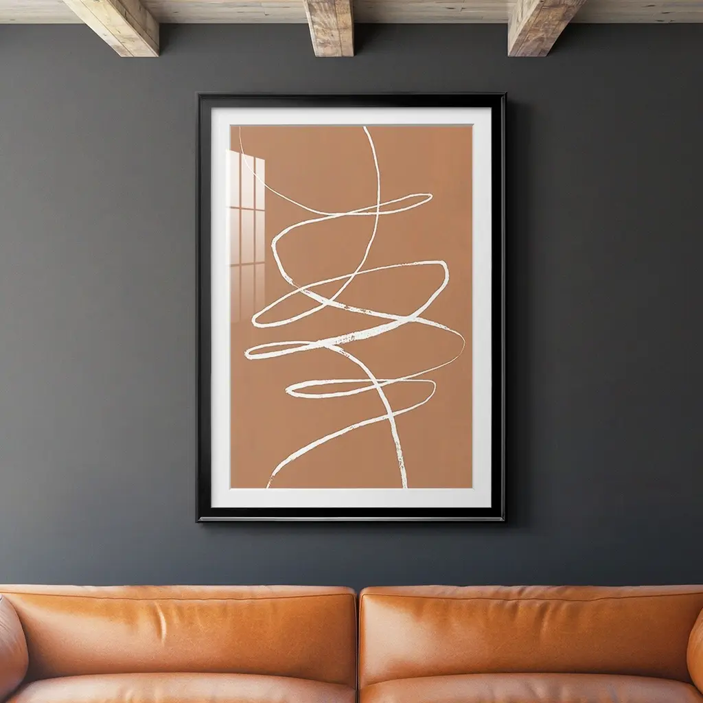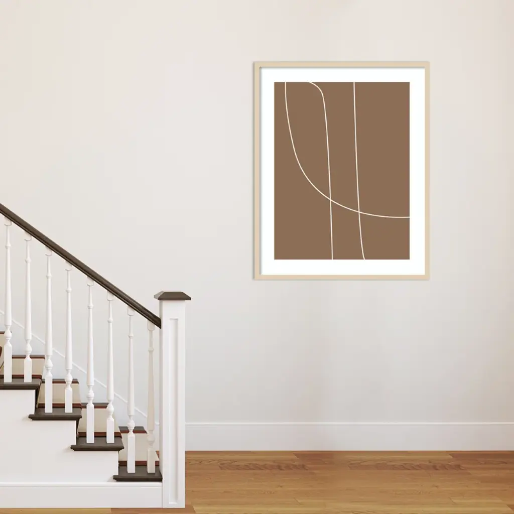 Artful Awe! This 'Modern Line Abstract 1 Mushroom Brown' by The Creative Bunch Studio, will surely captivate your guests. Crafted with an acrylic base and ensconced in a sturdy wood frame, it infuses your space with an air of sophistication. The abstract design, with its intersecting white arcs against a chocolate background, exudes elegance and grace. It's more than wall decor, it's a conversation starter. Plus, it's easy to hang and arrives framed, so you can enjoy it the moment it arrives!