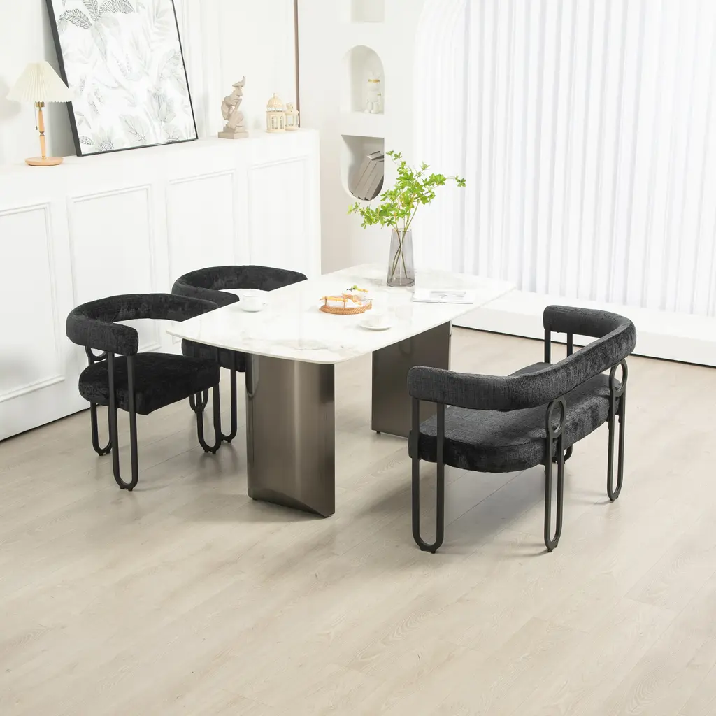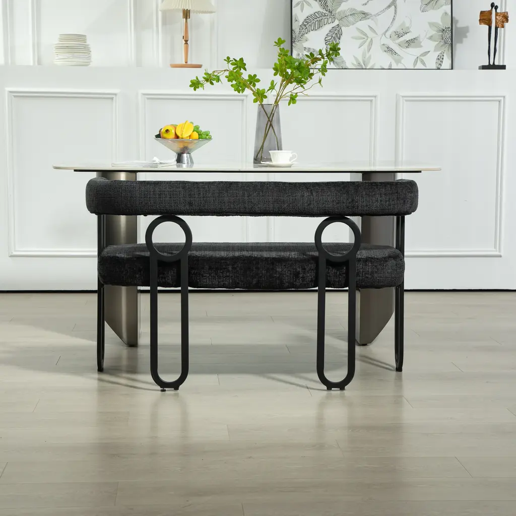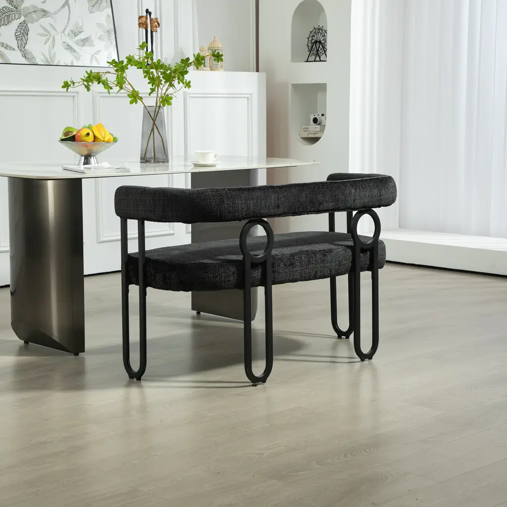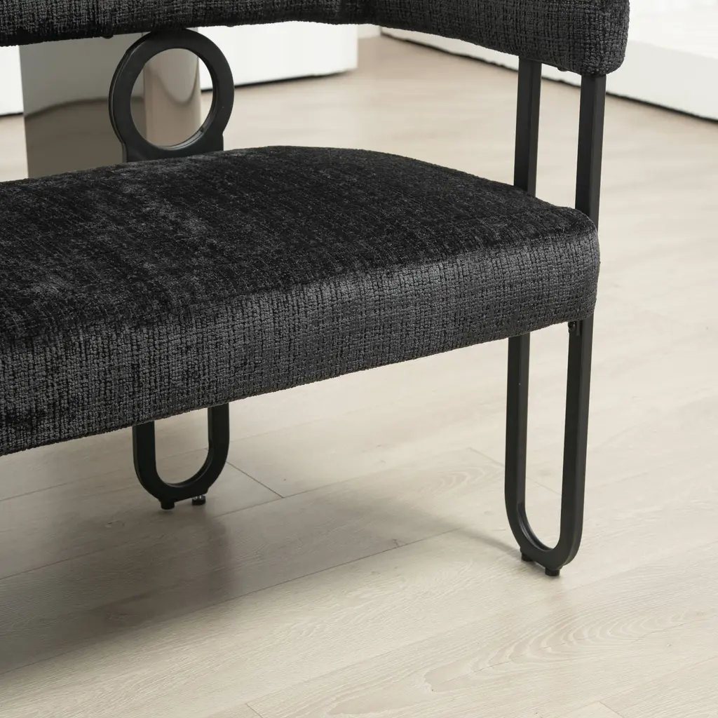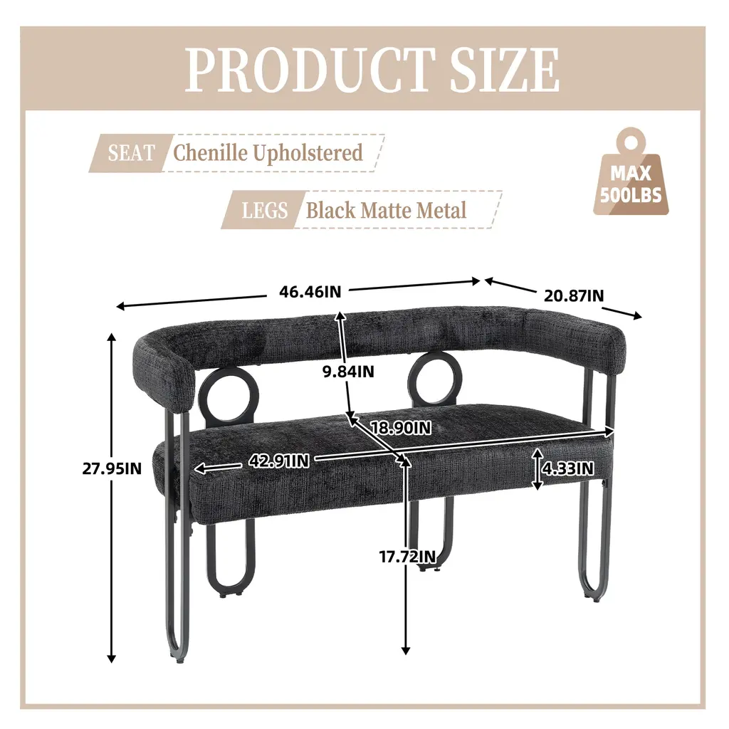 Product Dimensions Product Features #1 Comfortable Chenille Fabric:This double sofa is made of high-quality PU leather, which is soft and delicate to the touch, showing high-end texture, as well as wear-resistant and durable, both beautiful and practical.#2 High-density Sponge Cushion: The cushion is filled with high-density sponge, does not collapse after sitting for a long time, maintains long-lasting comfort and support, suitable for long time use, perfect for enhancing comfort.#3 Innovative Backrest Design: the backrest support frame is unique, consisting of 2 rings and 2 rectangular metal feet, combining artistic sense and stability, adding unique style to your home.#4 Strong Metal Frame: The whole sofa set is constructed with sturdy metal frame to ensure stability and durability for a long service life, making it a reliable home choice for daily life.#5 Non-slip Feet Design: each foot is equipped with non-slip feet to prevent scratches on the floor when moving, while improving stability and safety.#6 Chic Rounded Feet: The flooring feet are designed with chic rounded arcs that complement the overall style, increasing modern aesthetics while displaying unique fashion tastes.#7 Combination of Fashion and Functionality: simple design with modern elements, suitable for a variety of interior decorating styles, whether it is the living room, study or bedroom, it is an excellent choice.#8 Ergonomic Backrest: soft package backrest design, conforming to the ergonomic curve, provides good support for your back and ensures a comfortable experience when sitting for a long time.#9 Easy to Assemble: Comes with clear assembly instructions and all required tools, easy and quick to install, easy to assemble in a few minutes, save time and energy.