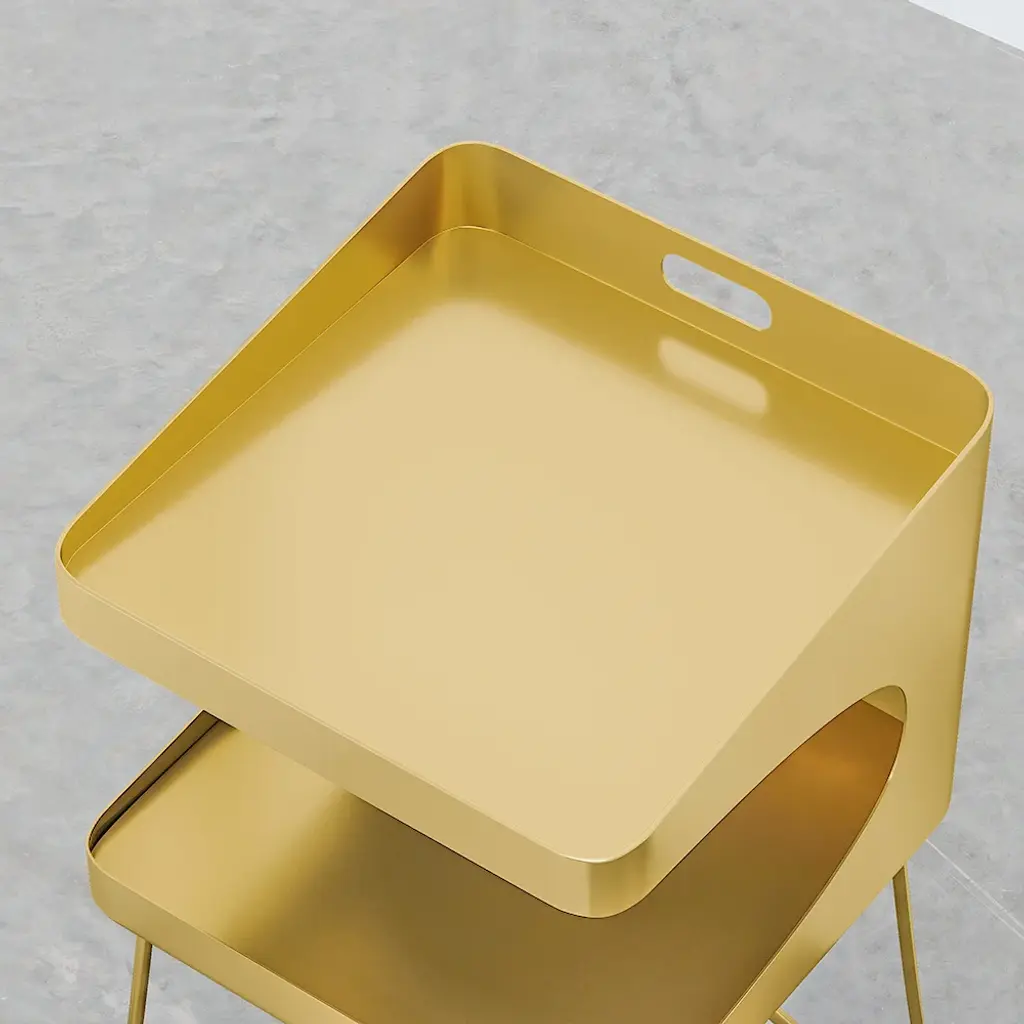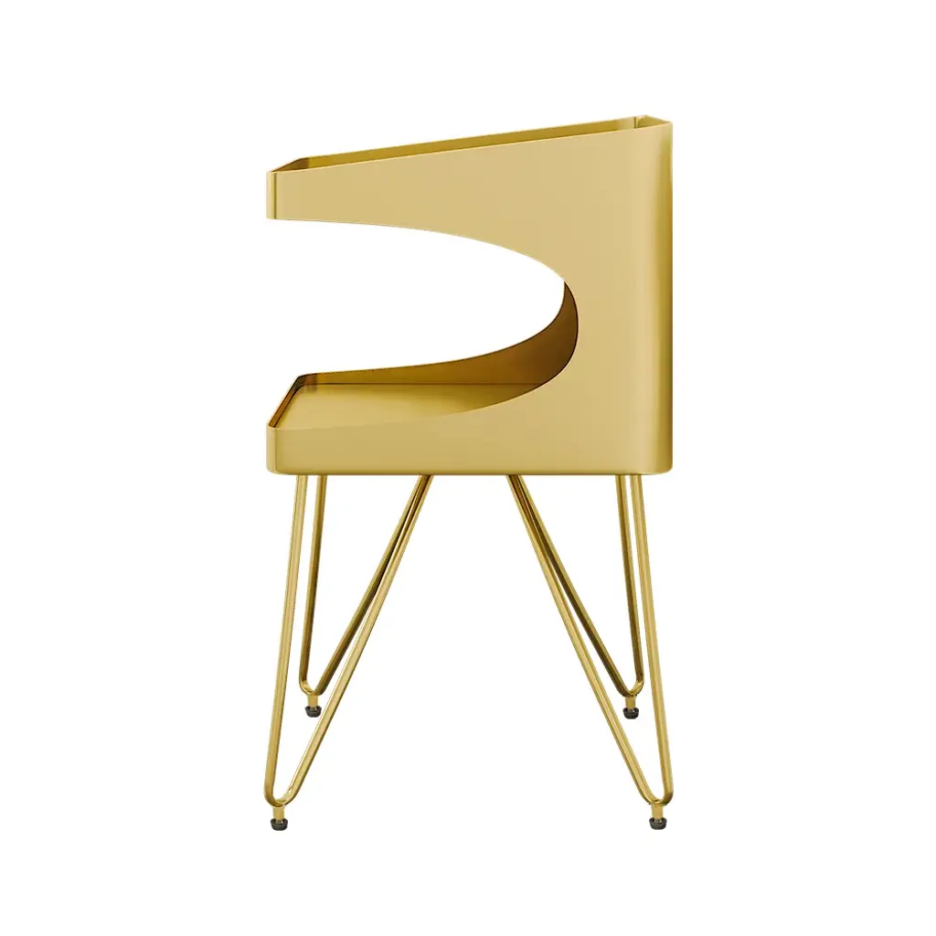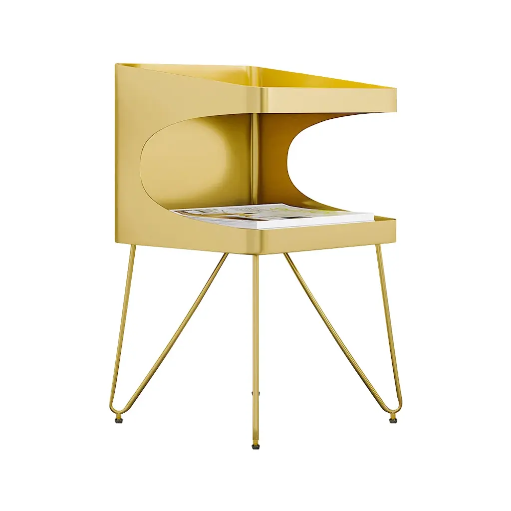 This industrial open nightstand combines solid metal construction with a reclaimed look. Finished in refined golden metal, it adds a luxury touch to any room. The top shelf is ideal for small lighting and essentials, while the bottom shelf offers space for photos, magazines, and other items.