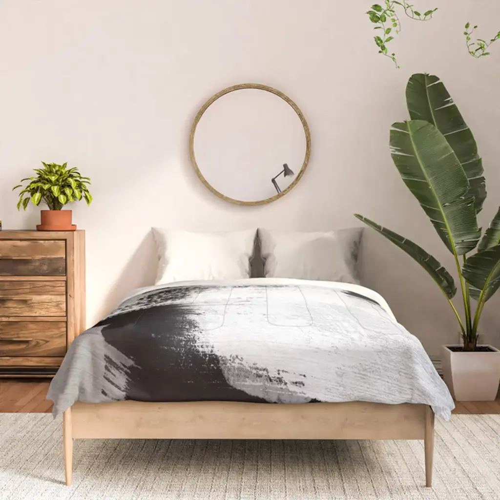 Modern Painterly Brush Strokes Texture In Bw Comforter