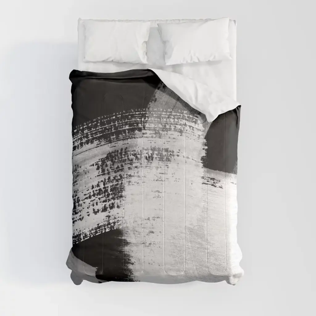 Modern Painterly Brush Strokes Texture In Bw Comforter