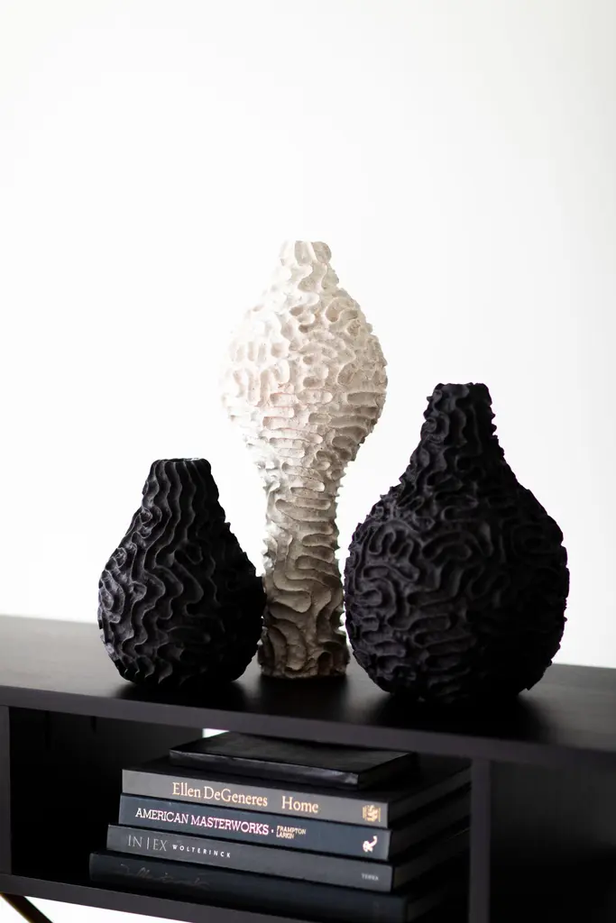 Designer: Suzy GoodelmanDistributor: Craft Associates FurniturePeriod/Model: NewSpecs: ClayDimensions: H 8.5" (43.18cm)W 6.5" (16.51cm)D 6.5" (16.51cm)This modern pottery by Suzy Goodelman for Craft Associates Furniture - 1912-SG is expertly hand built and crafted in NYC. This pottery line is exclusive to Craft Associates Furniture. All of these pieces are hand built and one of a kind. No two are ever exactly the same. Suzy primarily uses coiling and pinching for her pottery. These hand building techniques allow her to create the forms and textures she desires, and they naturally leave traces of finger marks over the entire surface. These finger marks become another element in the texture.Craft Associates Furniture is proud each modern piece is made in the US. We strive to craft a product and work with people who make product that will stand the test of time. We stand 100% behind our product."I love that clay is ancient. I love that it comes from the ground and that all the materials I use were once in the earth. I love that the ceramic process uses the four alchemical elements - earth, air, fire and water - and is literally transformational. I love that it teaches me over and over to surrender my expectations and ideas of being in control." - Suzy GoodelmanhistorySuzy Goodelman is a NYC native. She studied art and graphic design at Pratt Institute and School of Visual Arts, and then worked professionally as a graphic artist for many years, most notably with the Swedish design firm of Hall and Cederquist. This experience of Swedish design with its simple, clean lines and peaceful, empty space had a large influence on her aesthetic and artistic style. In 1999 she took up ceramics and found a creative expression that felt natural to her. In the course of her studies she discovered the world of Japanese and Korean pottery, and had an immediate and heartfelt response to the Asian ceramic aesthetic. She found that both the Swedish and Asian design sensibilities with their qualities of simplicity and serenity were, in her mind, quite compatible. These influences inform much of her work. Greenwich House Pottery has been Suzy’s ceramics home, haven, and main place of education. Having grown up in Greenwich Village, she always knew of GHP and, after taking a rudimentary beginning hand building class at a place in her neighborhood, knew it was time to go there. Suzy started taking classes at GHP in 2000 as a beginner and remains there to this day. After interning for a couple of years, she joined the staff in 2009, and in 2013 joined the faculty to start teaching. All throughout these teaching years she continued taking classes. It remains her studio to this day, and her staff position at GHP allows for 24 hour access to a beautifully equipped work space - a real luxury in Manhattan.