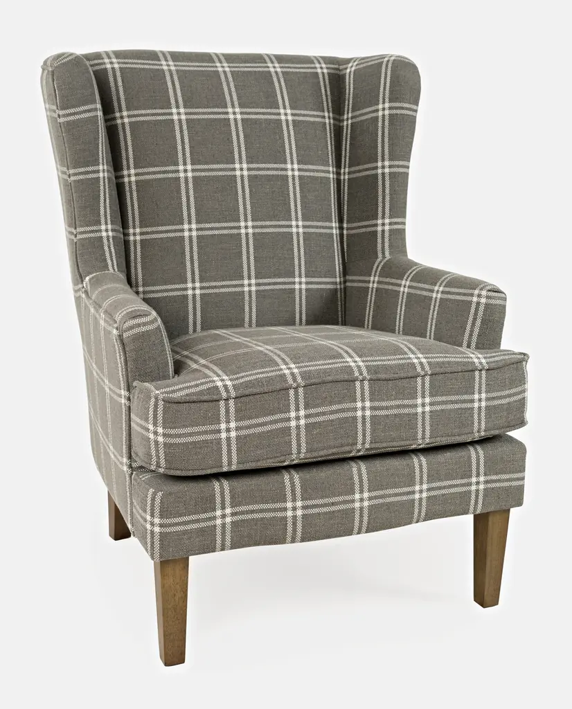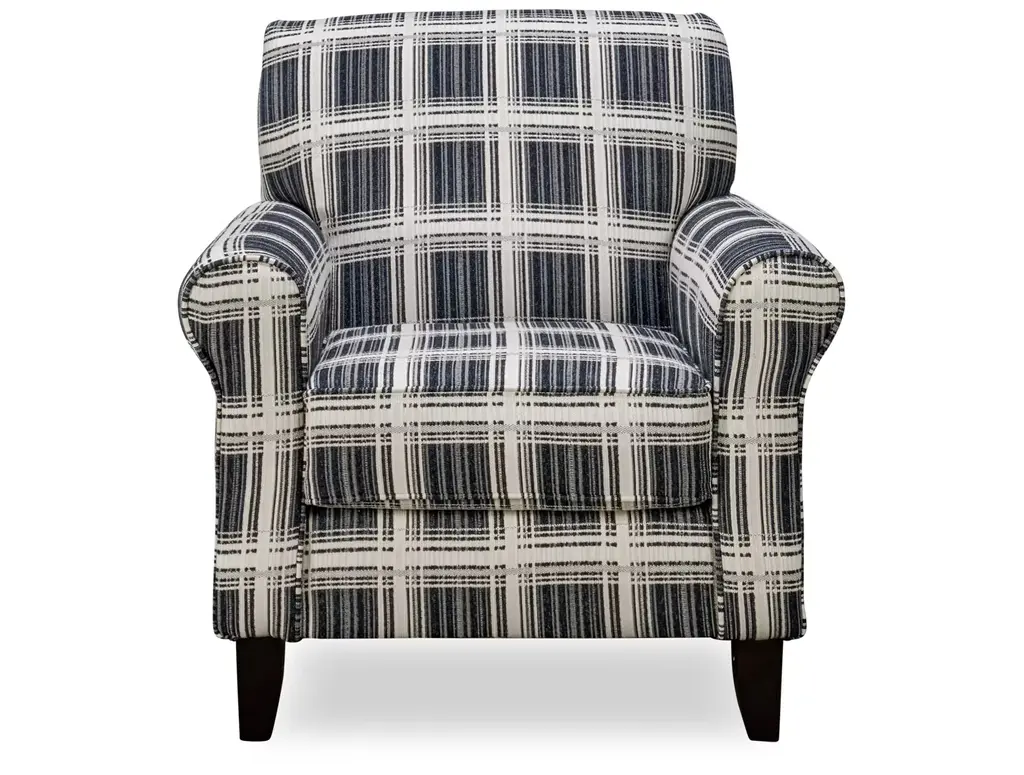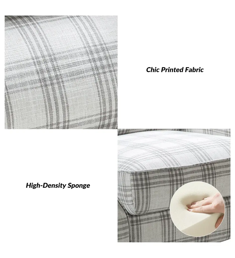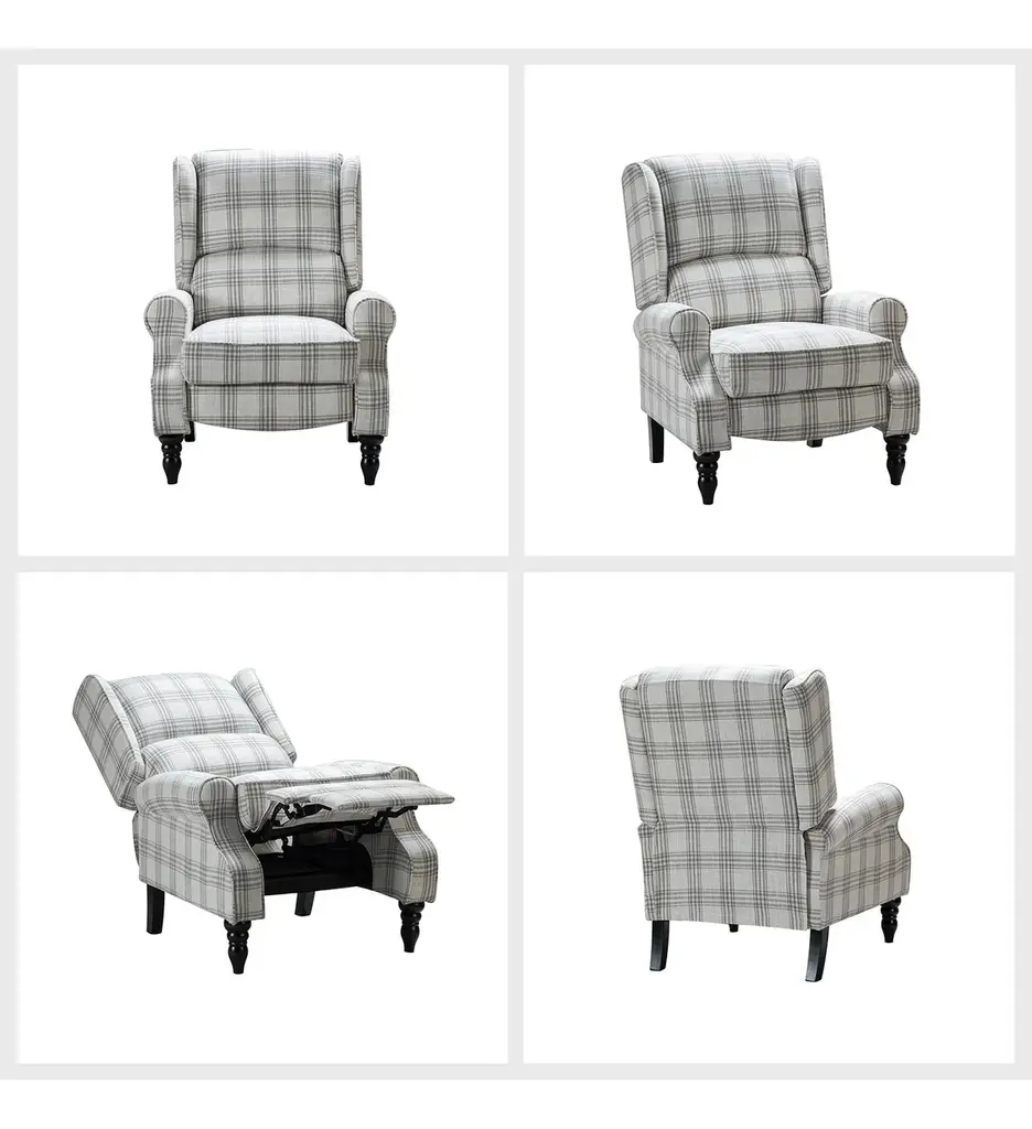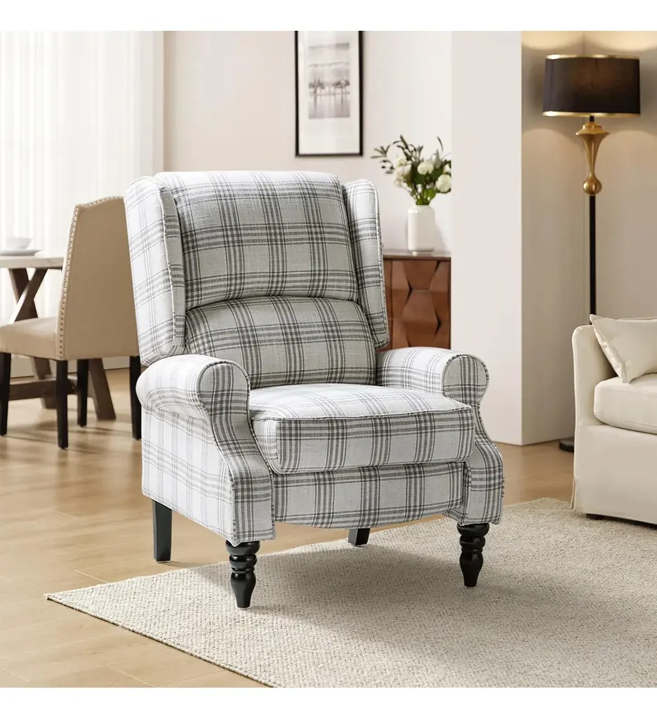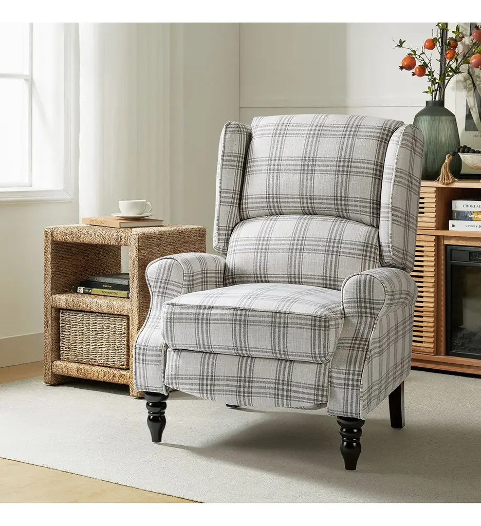 Modern Push-Back Plaid Recliner With Rolled Armrest, Plaid Gray
