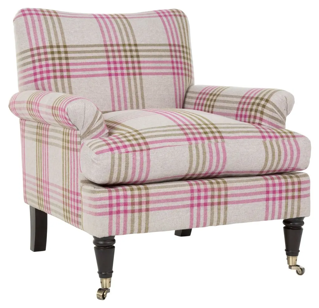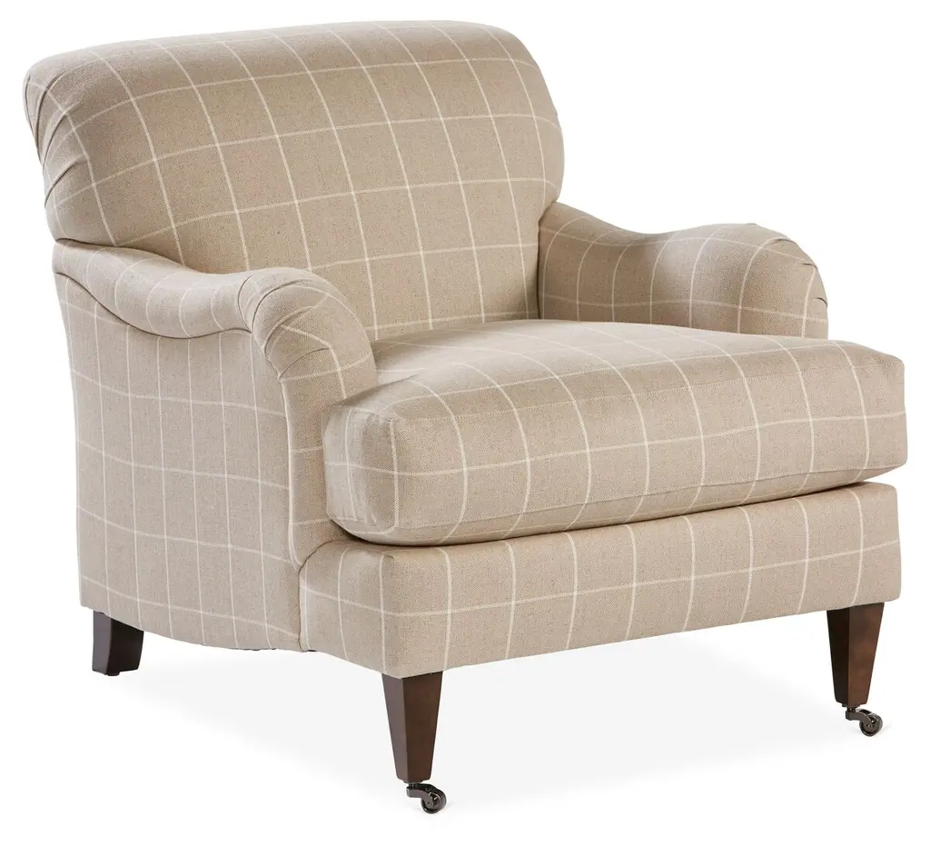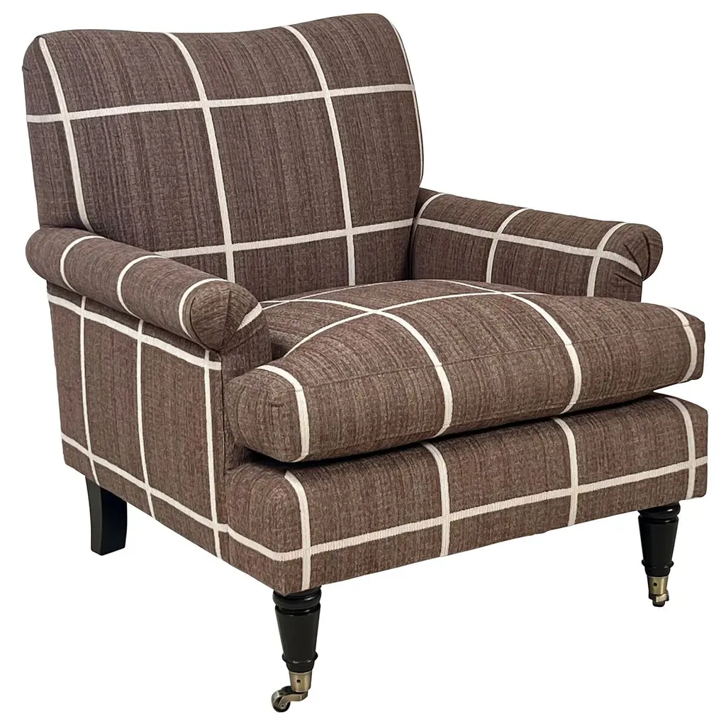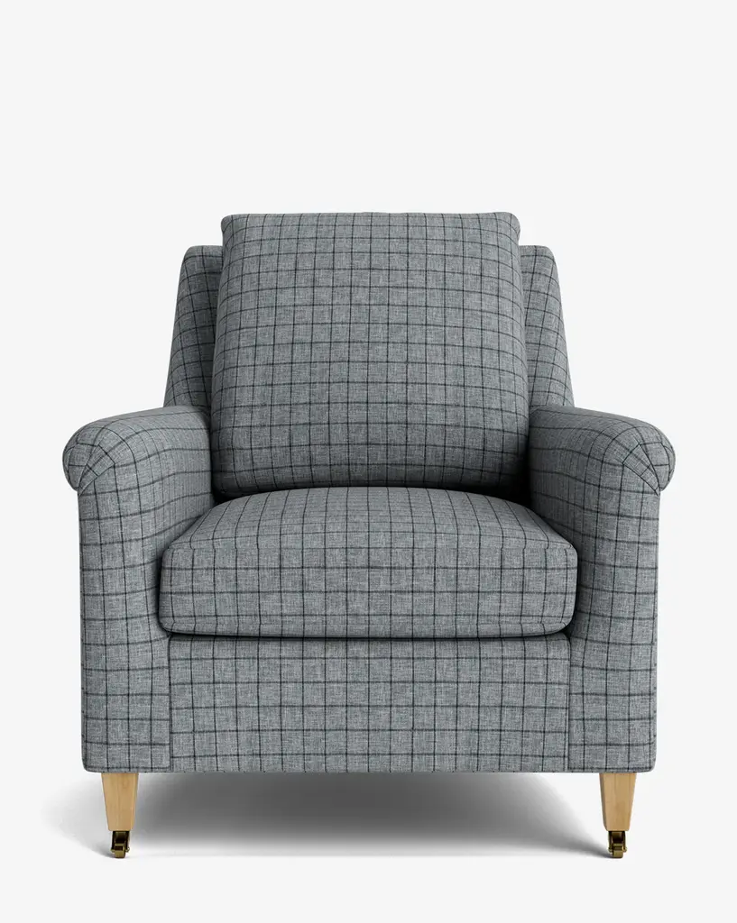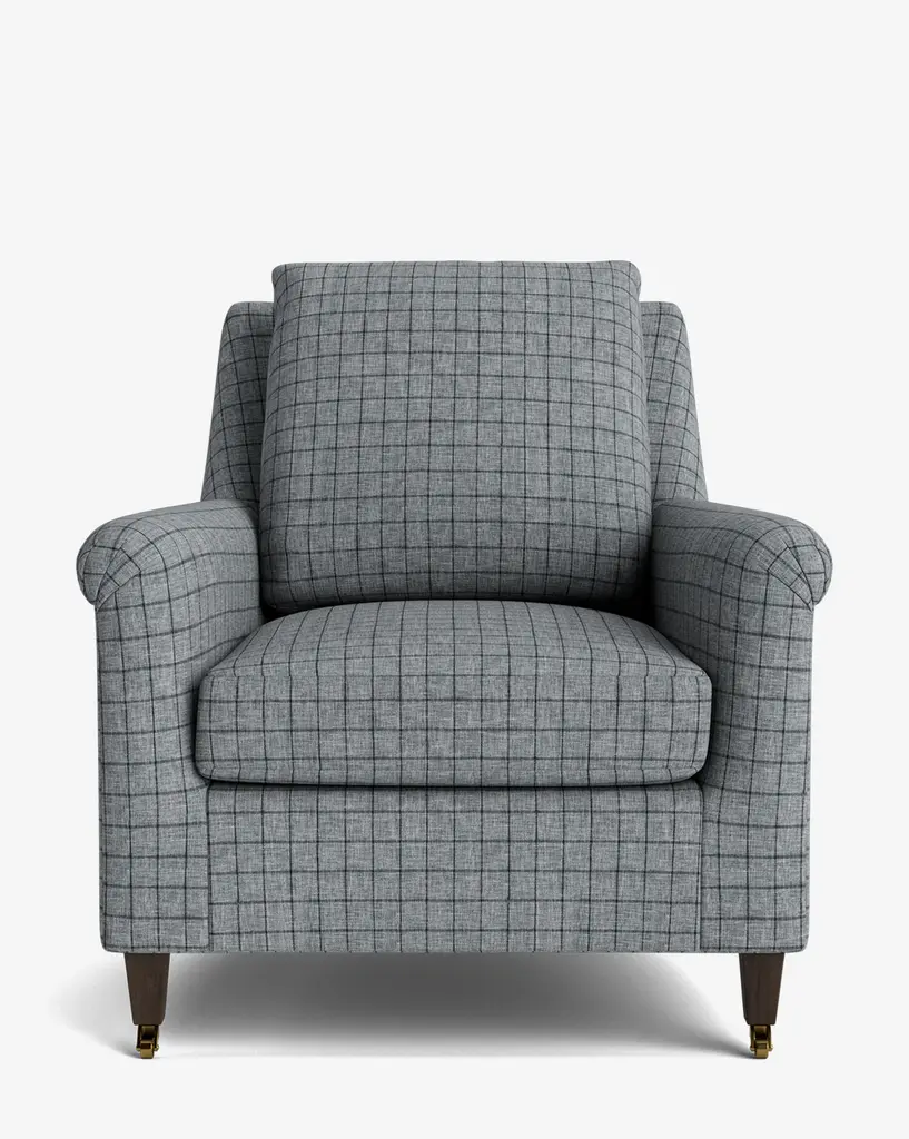 Modern Push-Back Plaid Recliner With Rolled Armrest, Plaid Gray