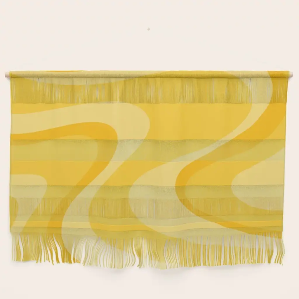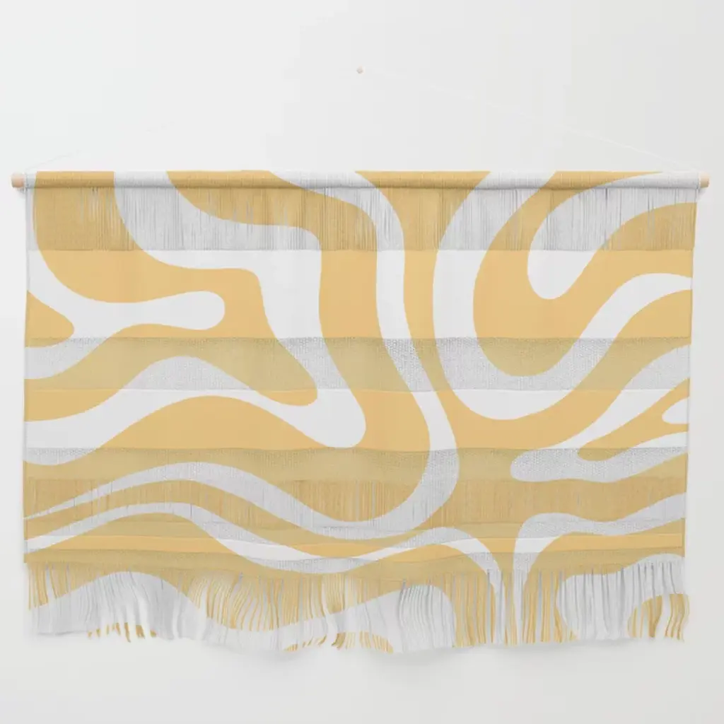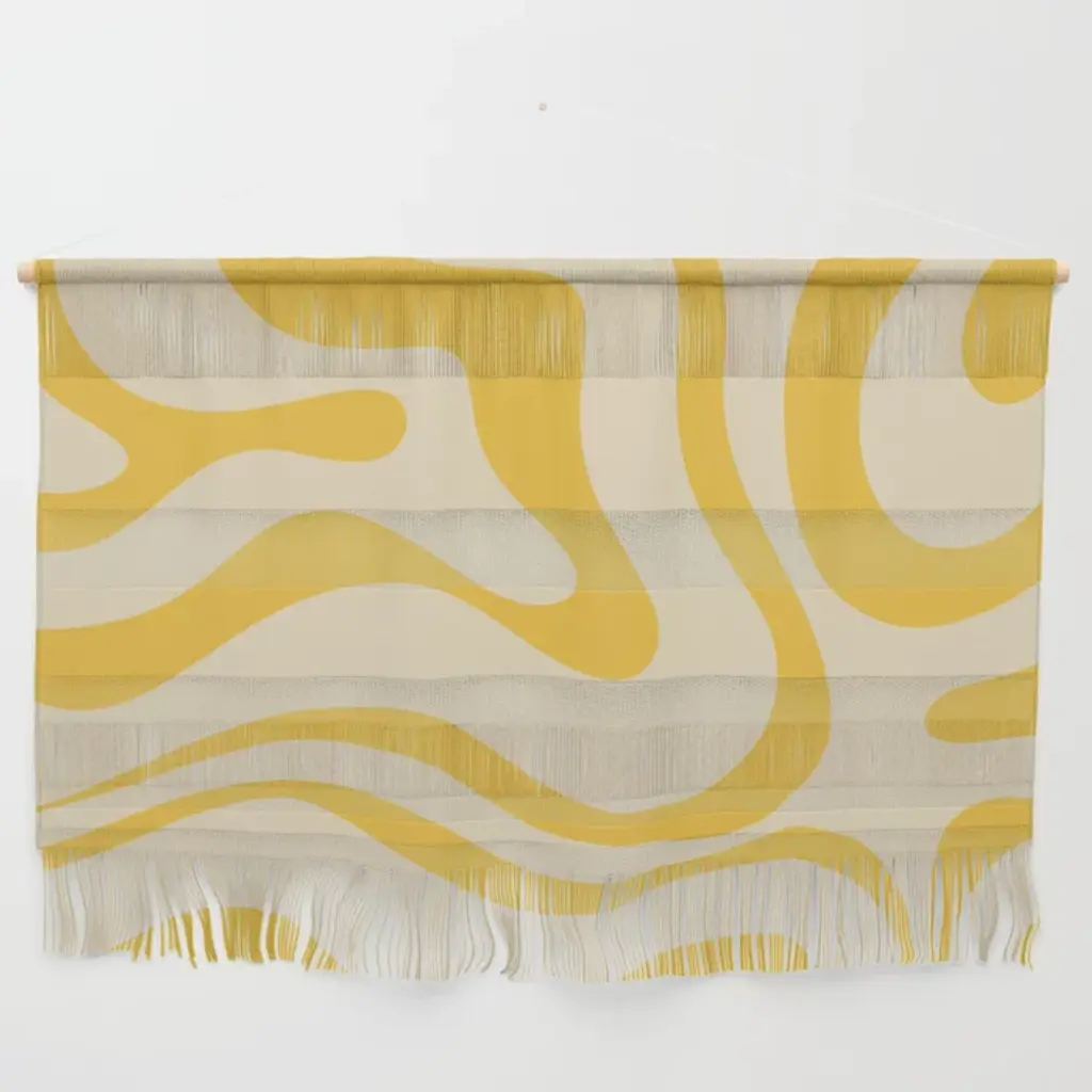 Modern Retro Liquid Swirl Abstract Pattern In Light Blue And Mustard Yellow Wall Hanging