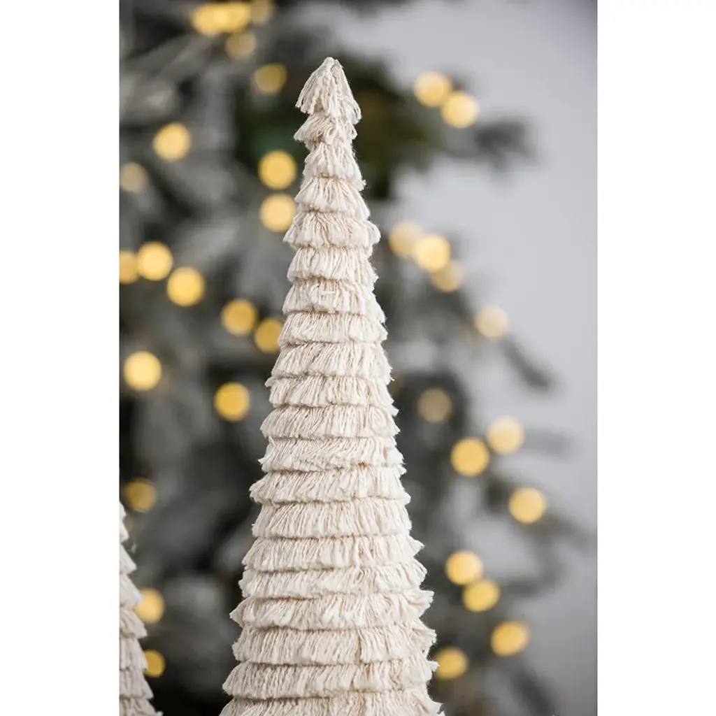 The combination of the warm wooden base and the joyful tassel embellishments instantly creates a cheerful and inviting holiday atmosphere. It's rustic charm meets celebratory flair. Natural Wooden Base: Anchoring the tree is a solid, unfinished or lightly stained wooden base. This natural element provides earthy warmth, stability, and a beautiful contrast to the festive tree, evoking a cozy, cabin-inspired feel. Perfect Cone Shape: Crafted over a sturdy conical form, the tree boasts a classic, symmetrical silhouette scaled perfectly for intimate displays, office desks, or as part of a festive vignette. Playful Tassel Accents: The true stars of this design are the abundant. Effortless Festive Spirit: The combination of the warm wooden base and the joyful tassel embellishments instantly creates a cheerful and inviting holiday atmosphere. It's rustic charm meets celebratory flair.