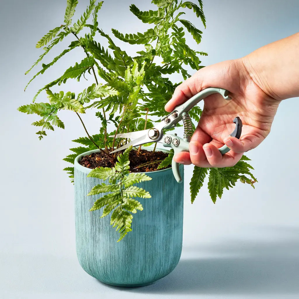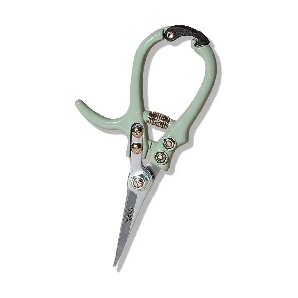 Keep your plants, indoors and out, properly trimmed with these lightweight and durable Modern Sprout Pruning Shears. These spring-loaded shears have an ergonomic handle for a no-slip grip and the extra-sharp blades are made from high carbon steel—with a needle nose for easy pruning and harvesting delicate plants and herbs. Other features include a thumb grip and a safety latch for keeping the shears closed when not in use. The Modern Sprout Pruning Shears measure 6h x 3w x 0.5"d.