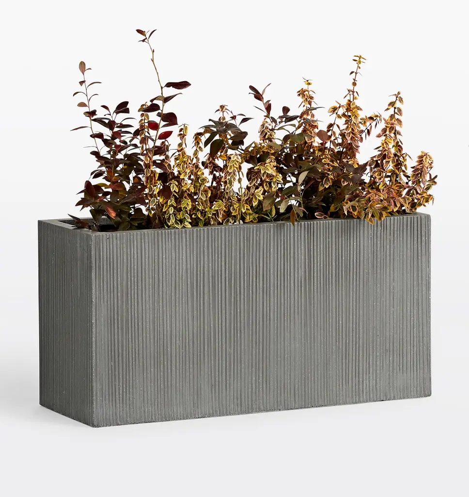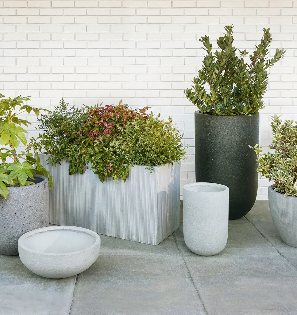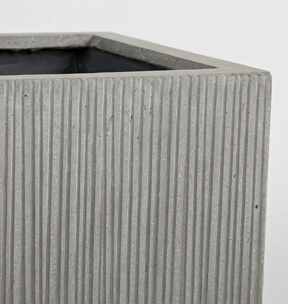 Lightweight and frost-proof, our Modern Textured Planter Collection adds texture to outdoor areas. Made from lightweight ficonstone, this all-weather collection comes in multiple shapes and sizes. Details You'll Appreciate Lightweight ficonstone withstands cold weather Product Specifications Ficonstone: 50% sand, 41% cement, 6% fiberglass, 3% other Drainage hole with rubber plug included Imported