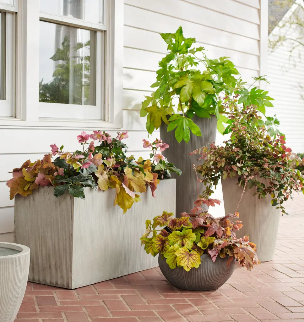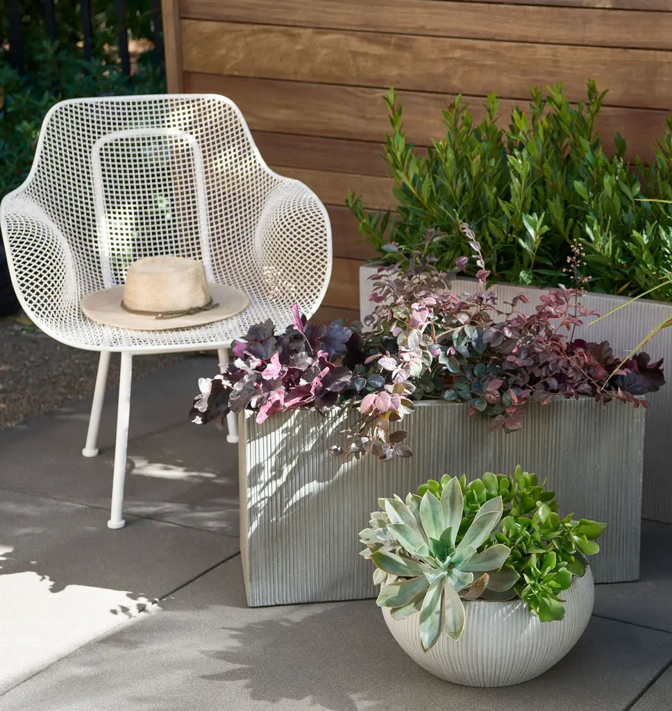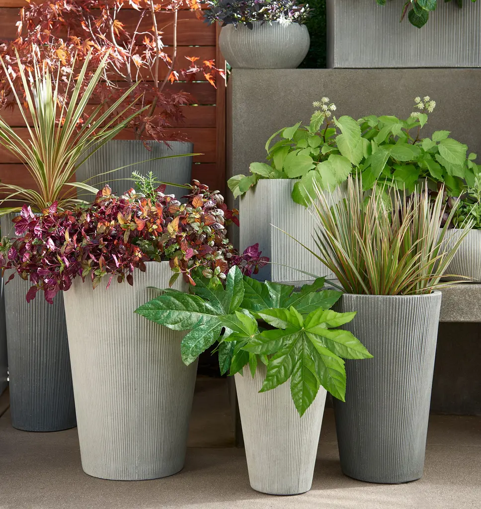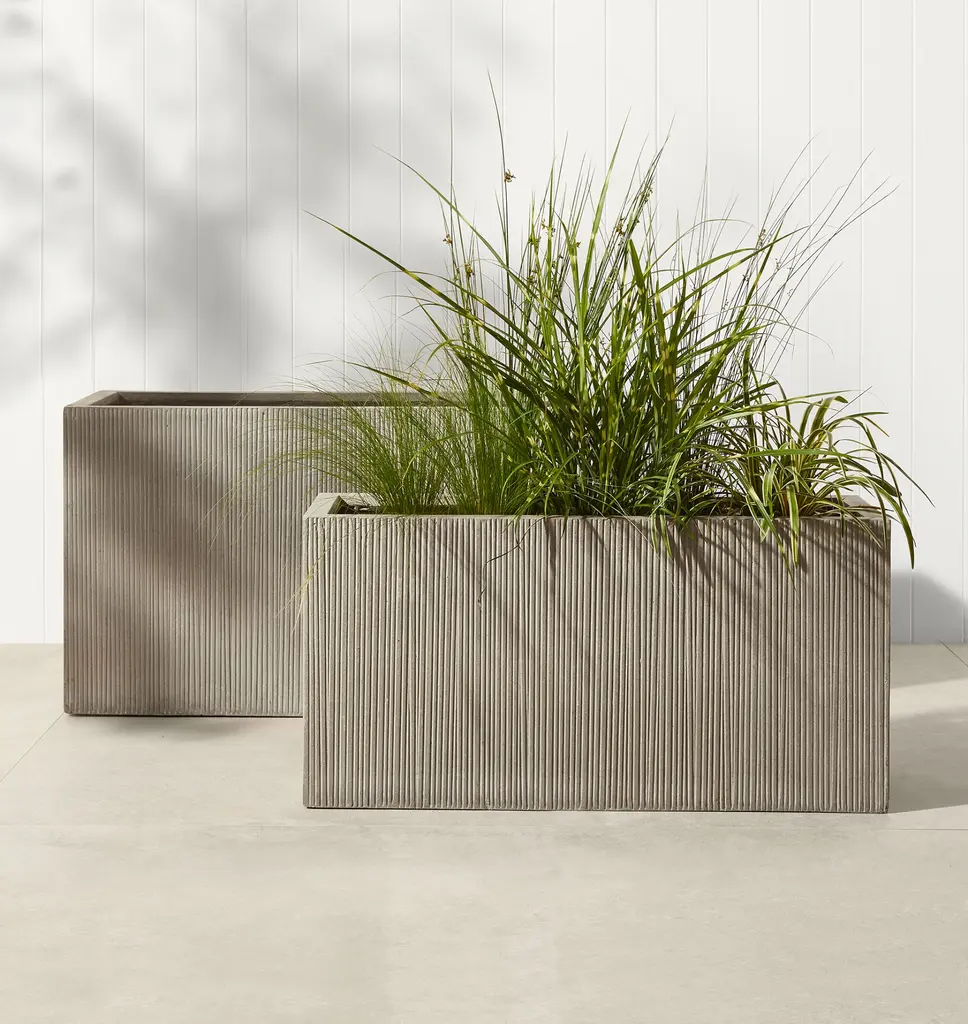 Lightweight and frost-proof, our Modern Textured Planter Collection adds texture to outdoor areas. Made from lightweight ficonstone, this all-weather collection comes in multiple shapes and sizes. Details You'll Appreciate Lightweight ficonstone withstands cold weather Product Specifications Ficonstone: 50% sand, 41% cement, 6% fiberglass, 3% other Drainage hole with rubber plug included Imported
