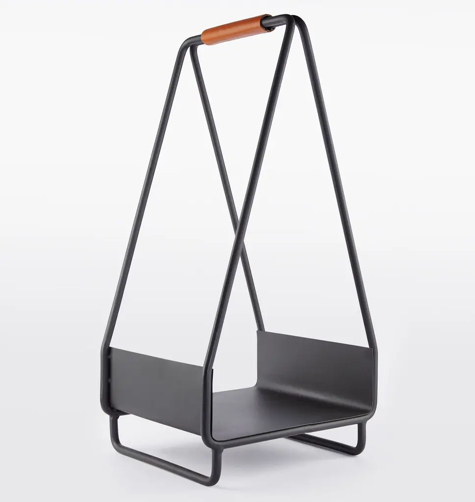 Featuring a hand-stitched, leather-wrapped handle and sturdy graphite iron design, our Modernist Log Holder is a sleek and sophisticated addition to any hearth. Details You'll Appreciate Graphite iron finish Sleek, modern design Product Specifications Iron with leather accent Imported