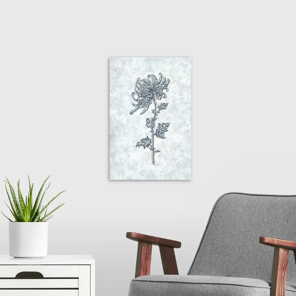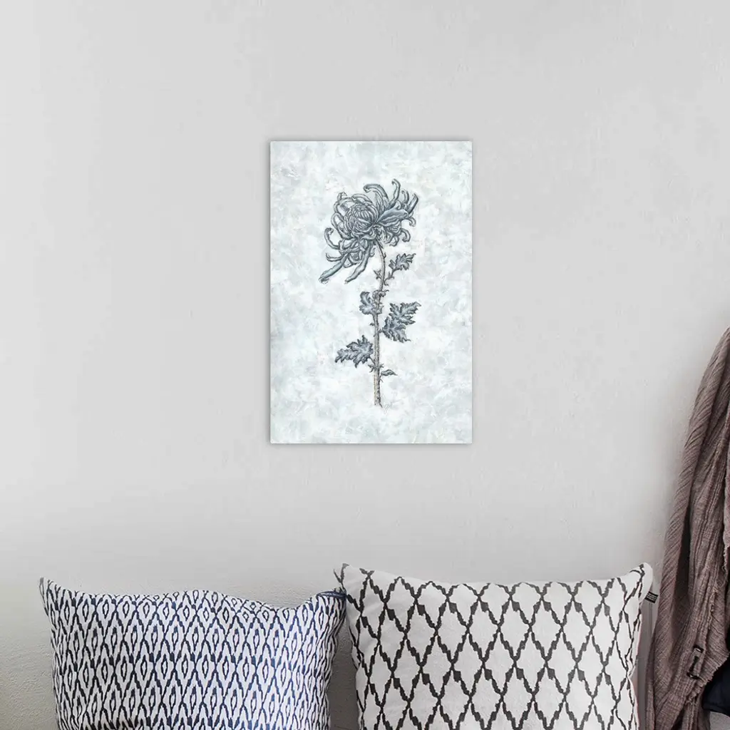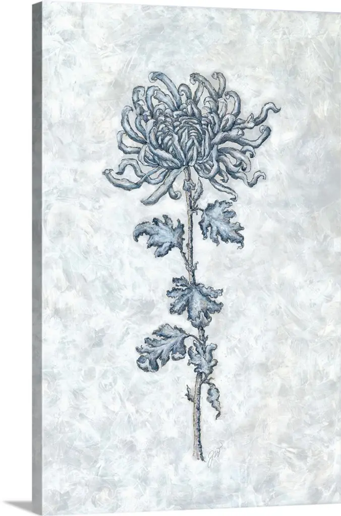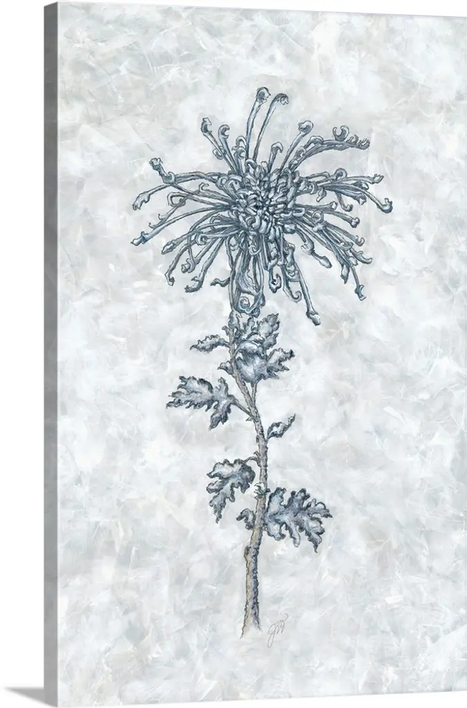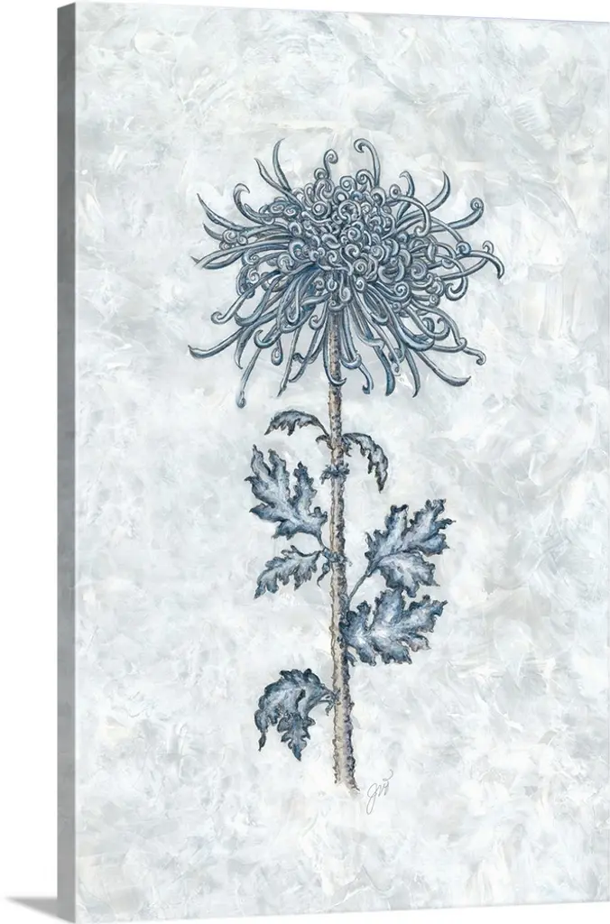 The soft blue hues of a delicate flower contrast elegantly with the white background.