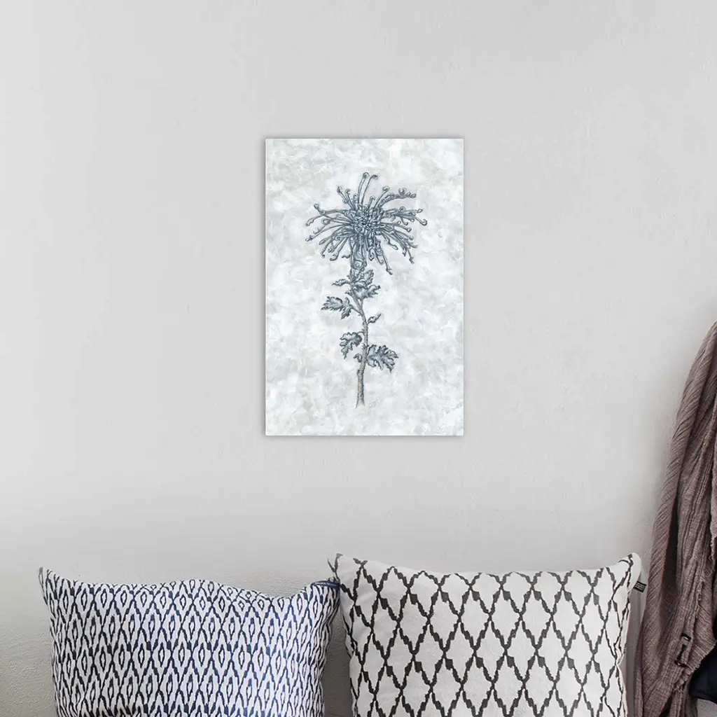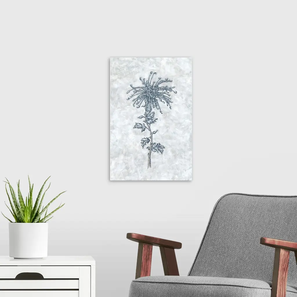 The soft blue hues of a delicate flower contrast elegantly with the white background.
