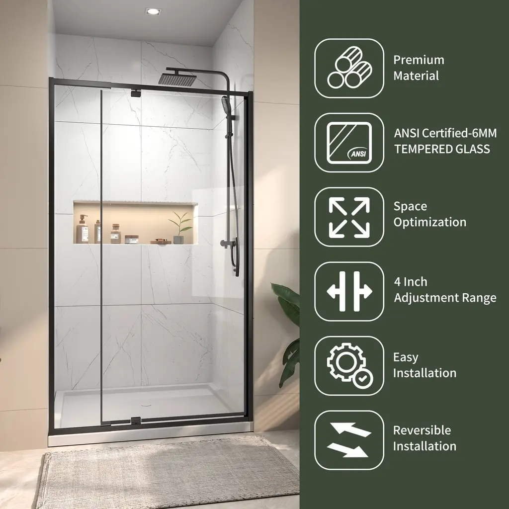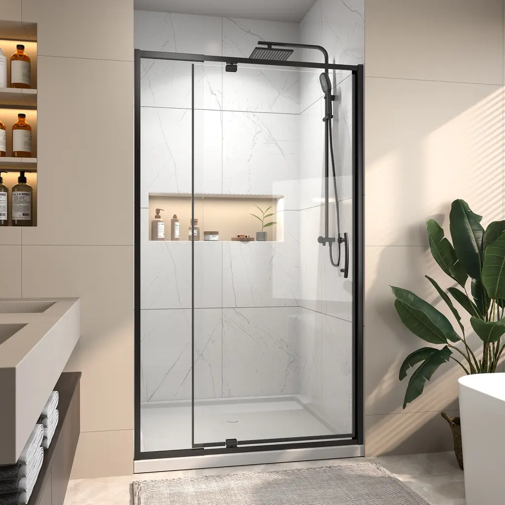 Modland 38''w - 42''w X 71''h Pivot Frame Sliding Shower Door With 1/4"(6mm) Clear Sgcc Tempered Glass, Black/nickel - 42x71 - Matte Black