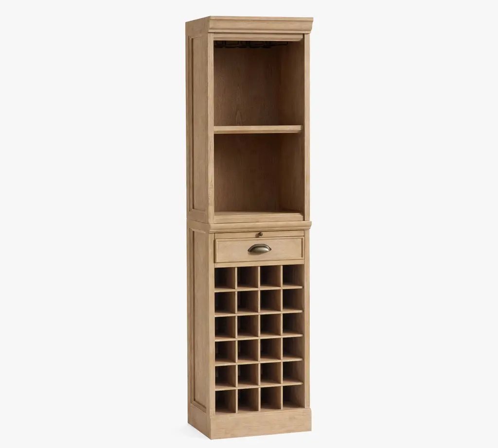 A stylish alternative to built-in cabinetry, the Modular Bar Towers organizes, stores and displays entertaining essentials.