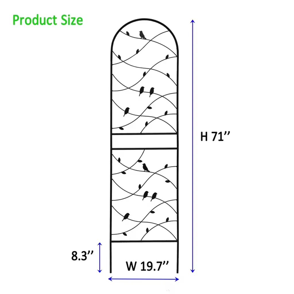 Easy to Assemble: Pre-cut and pre-drilled holes, the garden trellis can be assembled easily by a single person. You will get two 19.7’’ Wide x 71’’High trellises.Sturdy Material: Metal galvanized tube with powder coating surface treatment, double protection, better anti-rust ability.Good Design: You can use the pea trellis as a single trellis, or used to form a sturdy screen or corner with more of it and provide support for climbing plants while adding height and variety to your lovely garden.Multi-purpose: Great metal garden trellis for climbing plants, such as ivy vines, rose, morning glory, clematis, jasmine, grape, blackberry, cucumber, beans, peas, etc.