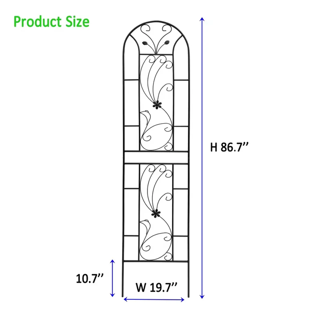 Easy to Assemble: Pre-cut and pre-drilled holes, the garden trellis can be assembled easily by a single person. You will get two 19.7’’ Wide x 86.7’’High trellises.Sturdy Material: Metal galvanized tube with powder coating surface treatment, double protection, better anti-rust ability.Good Design: You can use the pea trellis as a single trellis, or used to form a sturdy screen or corner with more of it and provide support for climbing plants while adding height and variety to your lovely garden.Multi-purpose: Great metal garden trellis for climbing plants, such as ivy vines, rose, morning glory, clematis, jasmine, grape, blackberry, cucumber, beans, peas, etc.