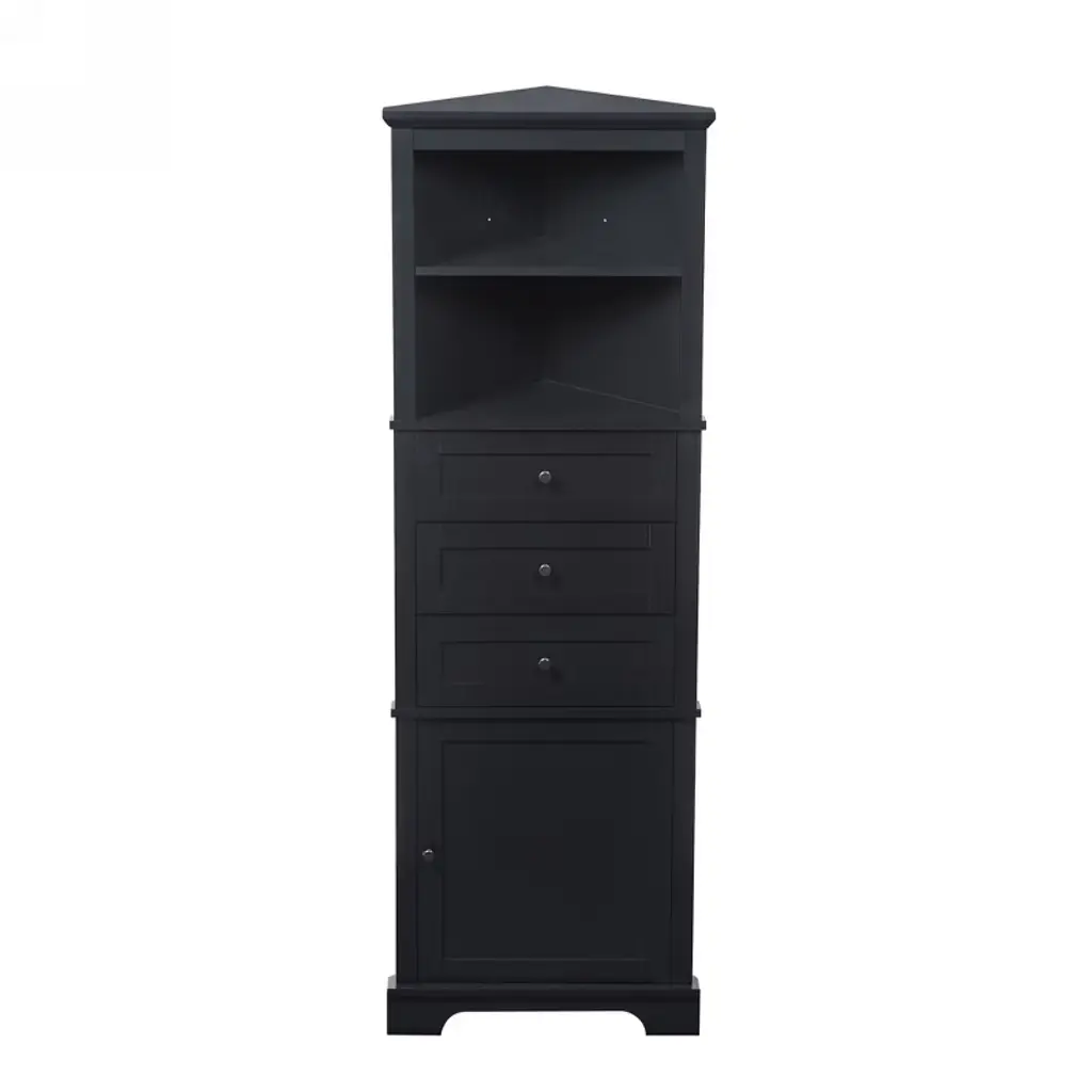 Moepisy Black Triangle Tall Corner Cabinet With 3 Drawers And Adjustable Shelves