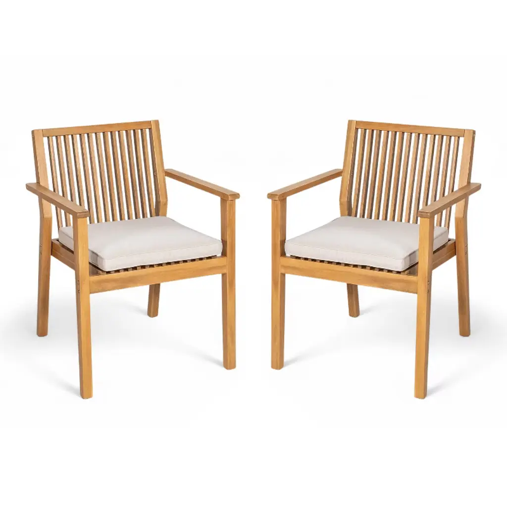Moepisy Set Of 2 Patio Dining Chair, Sturdy Acacia Wood, Comfortable Waterproof Seating, 400 Lbs Capacity, Natural Color Frame