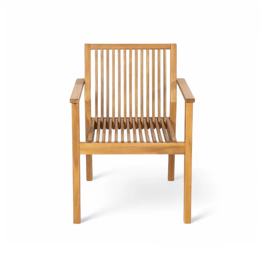 Sturdy Acacia Wood Frame: Crafted with durable acacia wood, ensuring long-lasting use for outdoor dining. Can bear up to 400 lbs per chair. Waterproof & Washable Cushions: Seat cushions feature waterproof fabric and foam filling. Removable covers for easy cleaning, keeping them fresh. Comfortable Design: The ergonomic structure with armrests provides cozy seating. Ideal for outdoor meals, chats, and relaxation. 2-Piece Set Value: Comes as a pair, perfect for couples or small gatherings. Instantly upgrade your outdoor dining space. Easy Assembly & Maintenance: Simple to put together. The wood frame requires minimal care; cushions are easy to clean and maintain. Proper Size for Versatility: Dimensions 24" W * 23.5"D * 32.5"H fit most outdoor areas, like patios, gardens, and balconies.