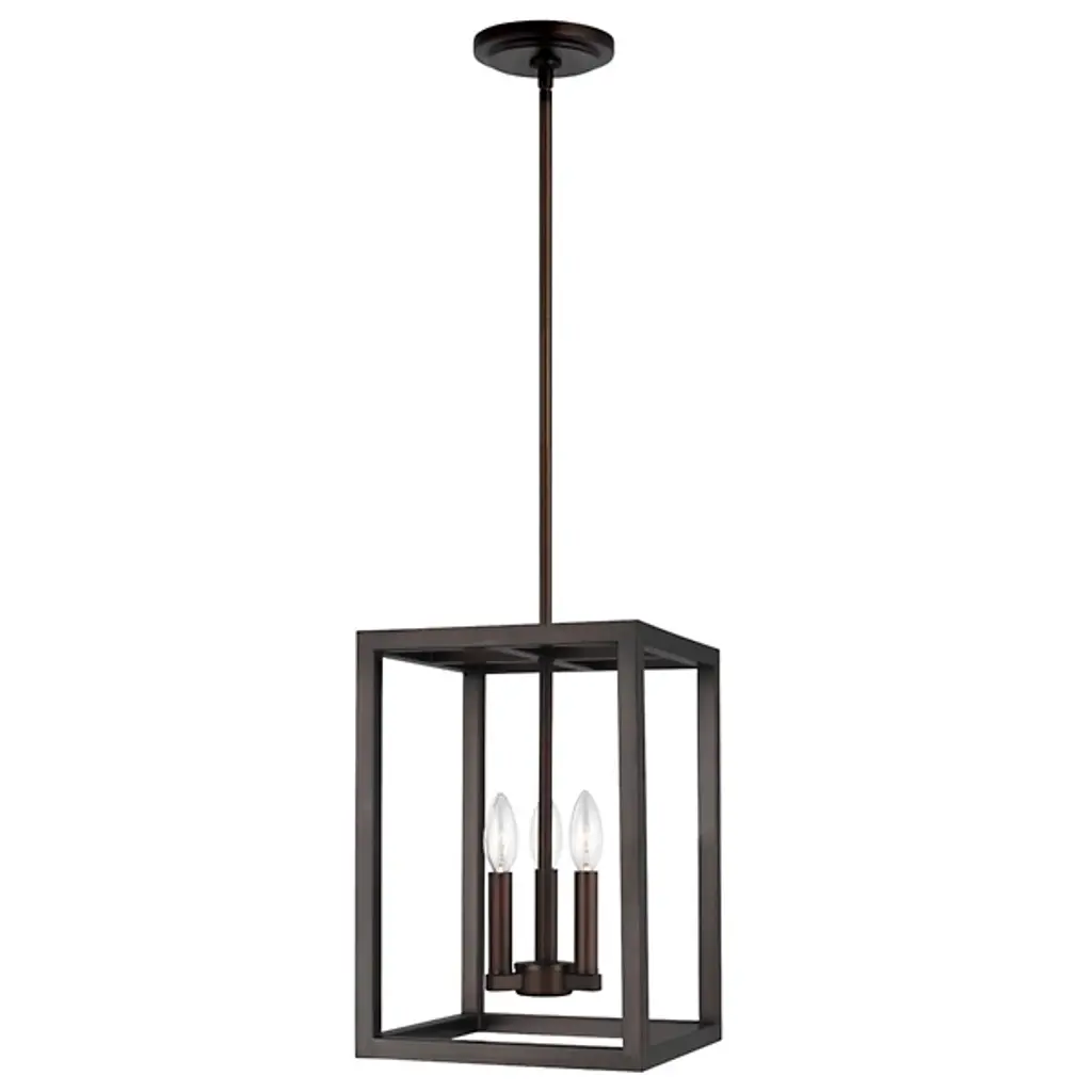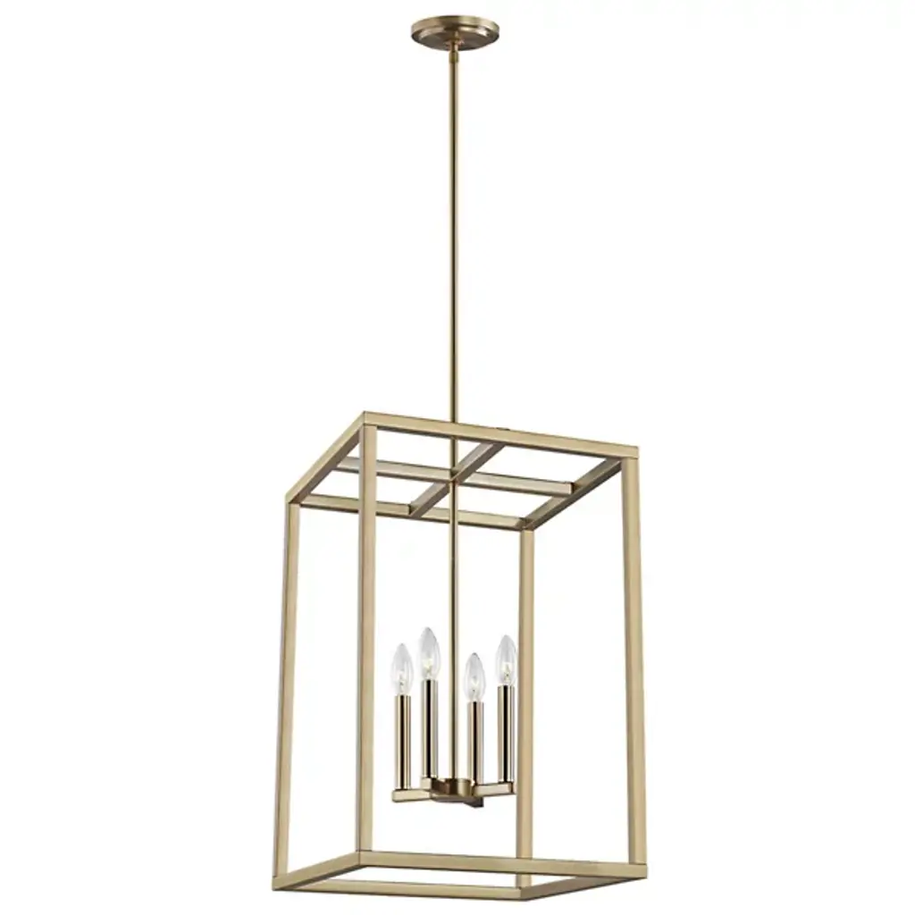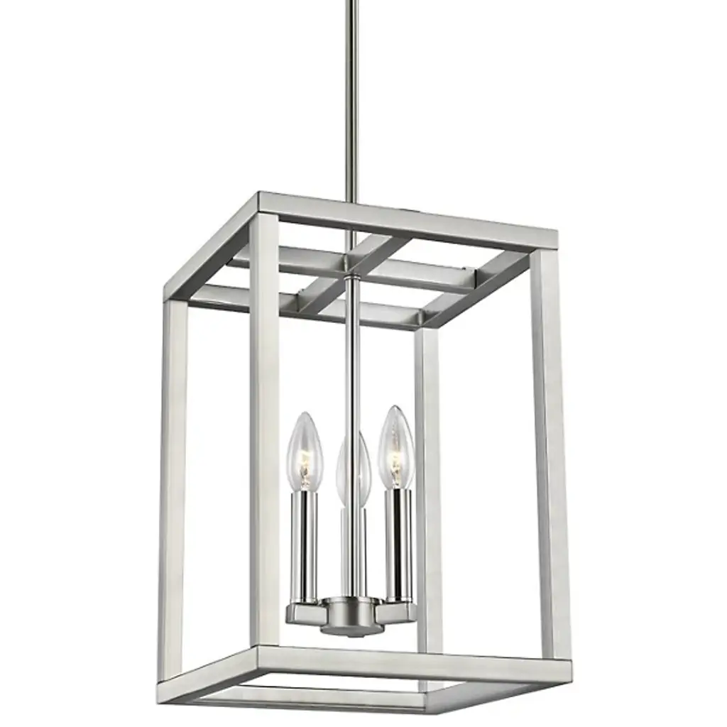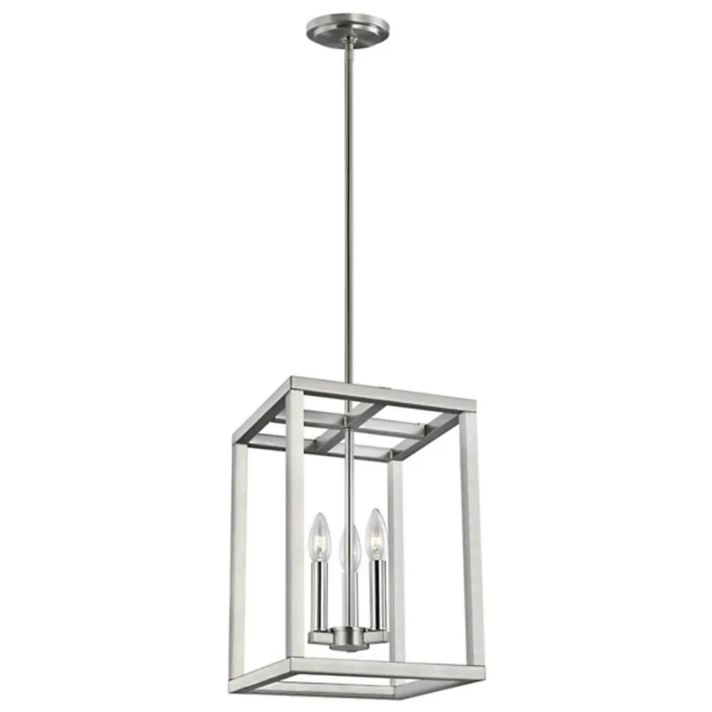 The Moffet Street Pendant by Generation Lighting, formerly known as Sea Gull Lighting, features geometric lines that draws your eye up to the simple yet sophisticated shape. The collection of finishes are visually striking while delivering a cool, contemporary feel. High gloss lamp holders and hardware offer contrast and complete the feel of this piece.