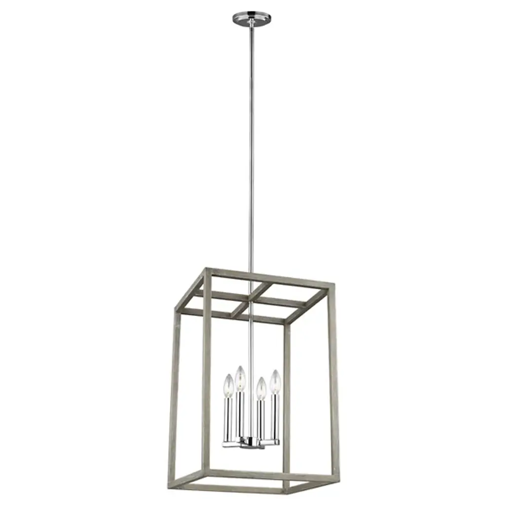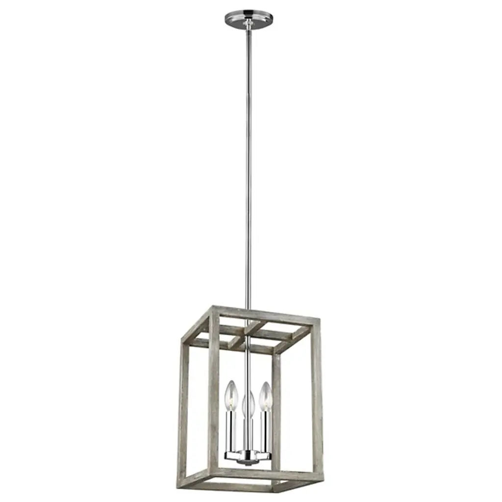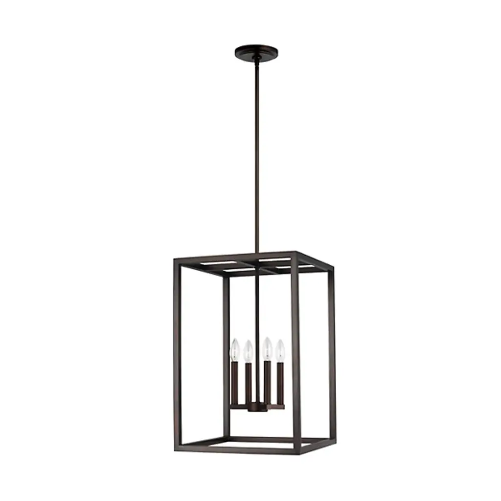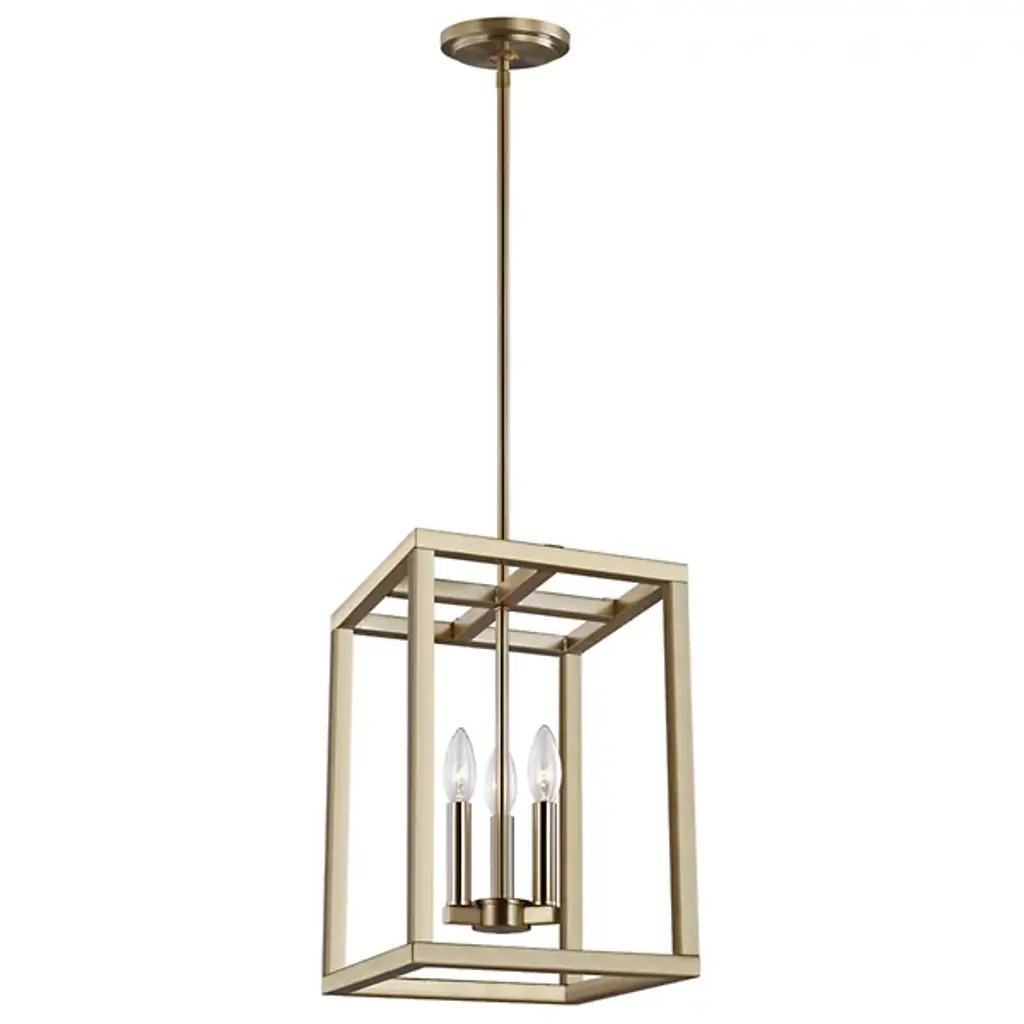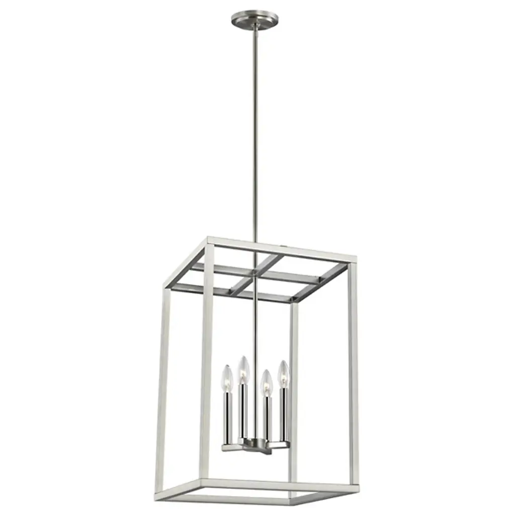 The Moffet Street Pendant by Generation Lighting, formerly known as Sea Gull Lighting, features geometric lines that draws your eye up to the simple yet sophisticated shape. The collection of finishes are visually striking while delivering a cool, contemporary feel. High gloss lamp holders and hardware offer contrast and complete the feel of this piece.