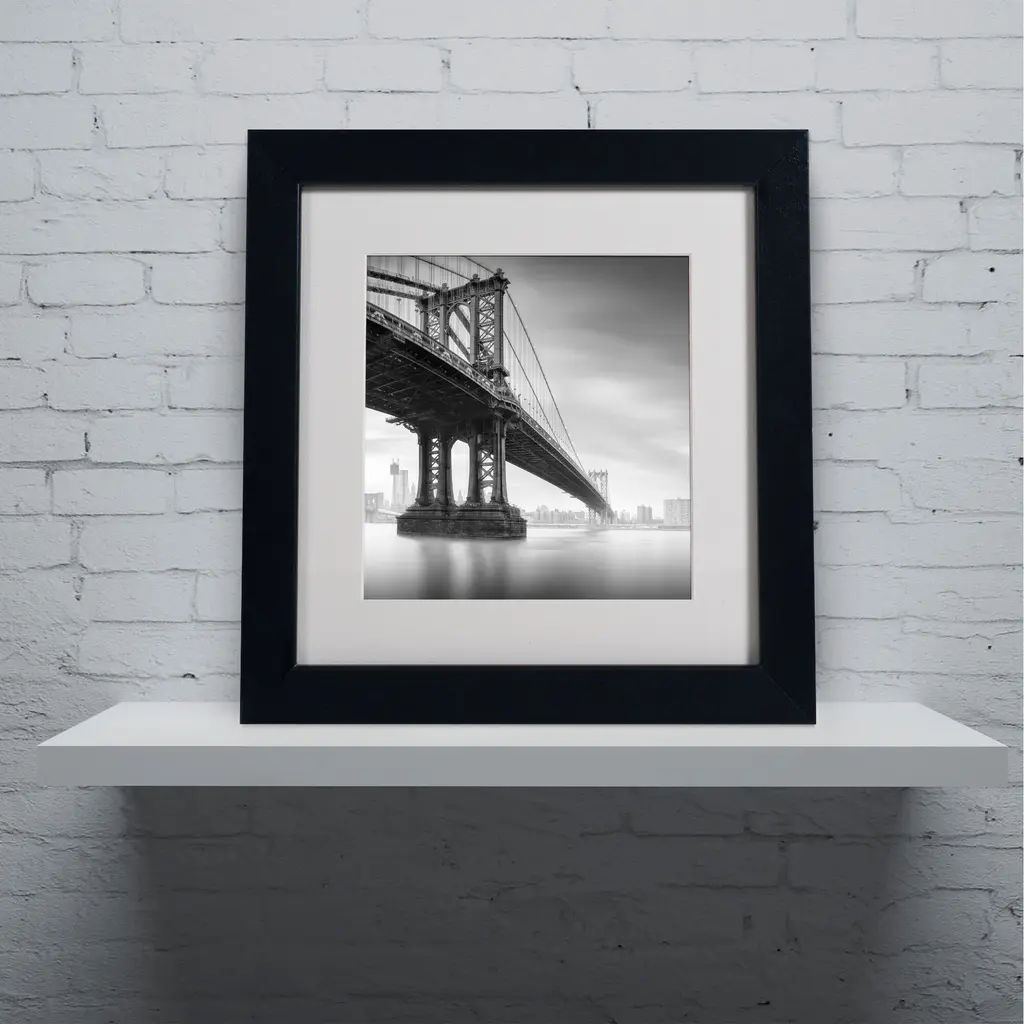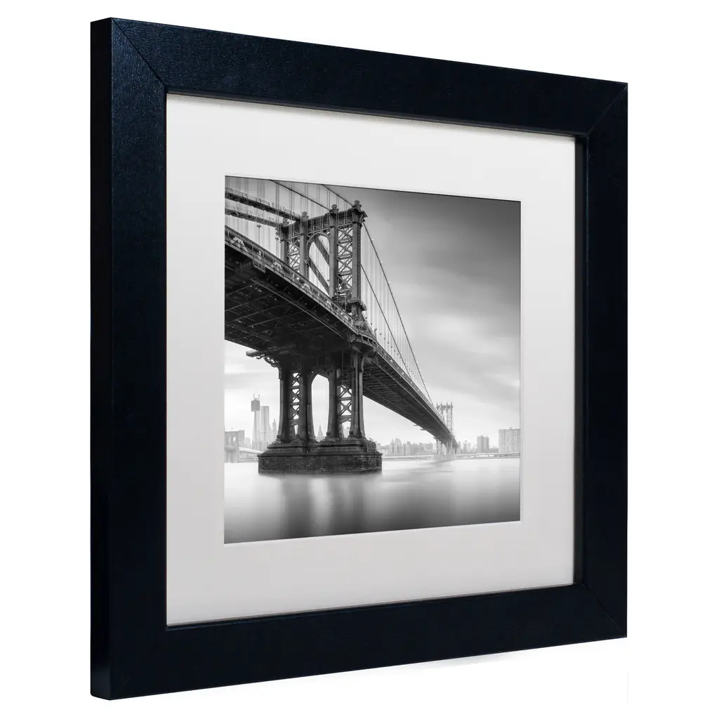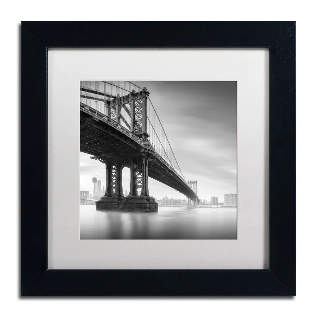 Moises Levy 'Manhattan Bridge I' White Matte, Black Framed Wall Art - White Matte, Black Frame 11x11 (Print Is 7X7)