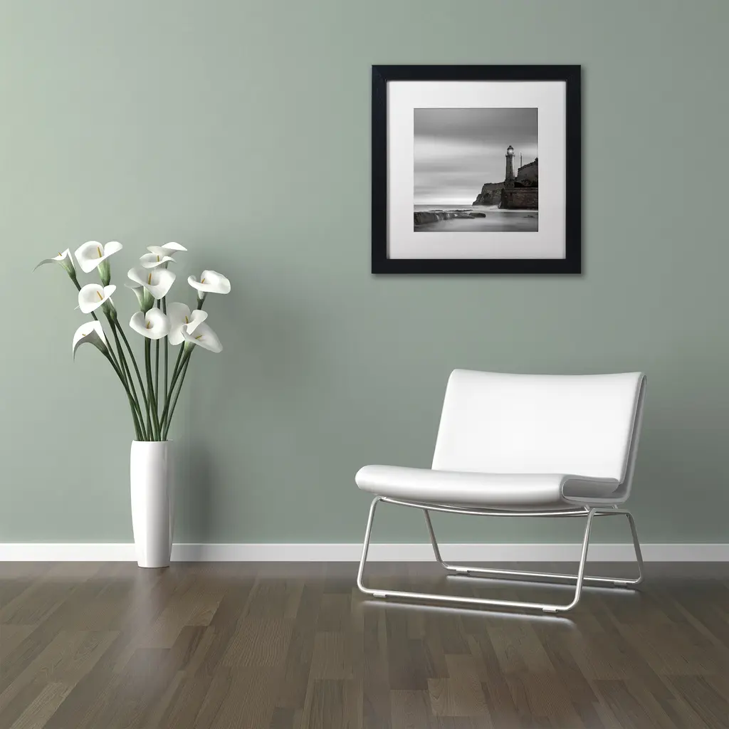 Moises Levy 'Morro Lighthouse' White Matte, Black Framed Canvas Wall Art - White Matte/black Frame - 16 X 16