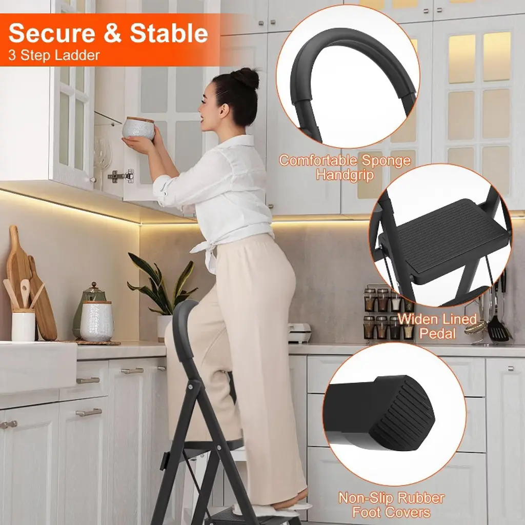 Mojgar 3-step Folding Ladder, 330lbs Load Capacity, Lightweight 6.94lbs With 1.57in Folding Width