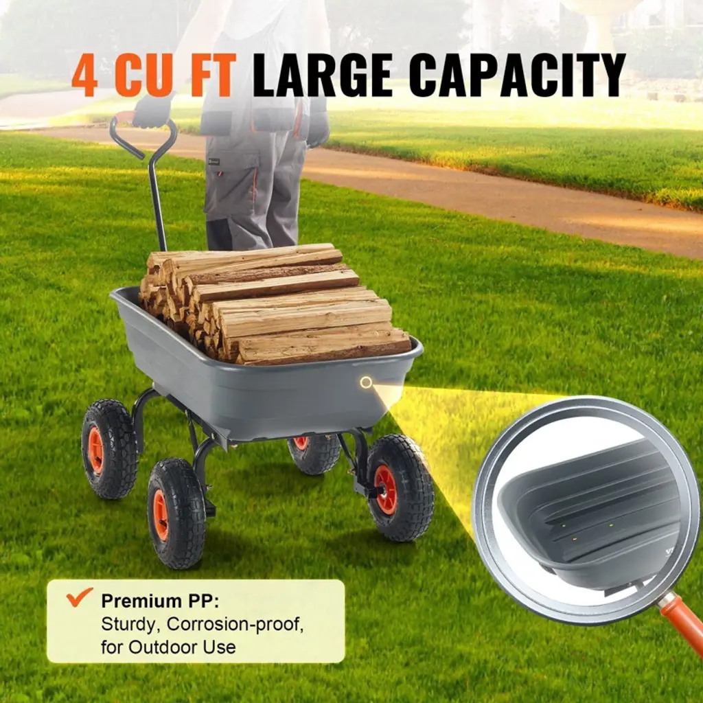Mojgar Dump Cart, Garden Dump Cart Dump Wagon, Utility Wheelbarrow 600 Lbs Capacity, 10 Inch Tires