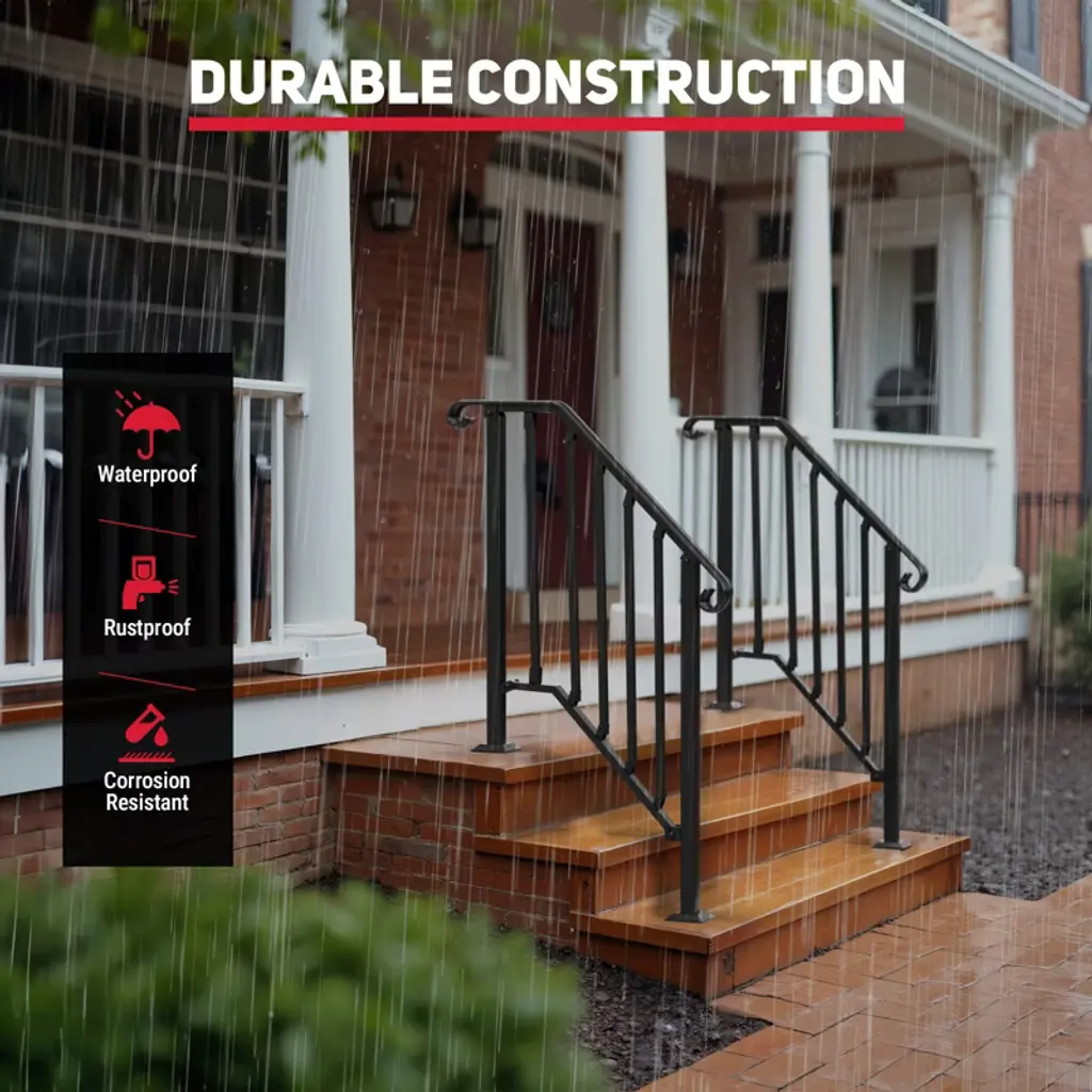 Commercial-Grade Adjustable Stair Handrail delivers unmatched 600lb wrought iron stability with rust-proof powder coating for lifelong outdoor use. Its innovative 35° pivot system fits any step height or slope instantly. Features a weather-resistant textured grip that stays secure in wet conditions – critical for seniors, children, and mobility-limited users. Installs in 15 minutes with included hardware and cleans effortlessly with water.