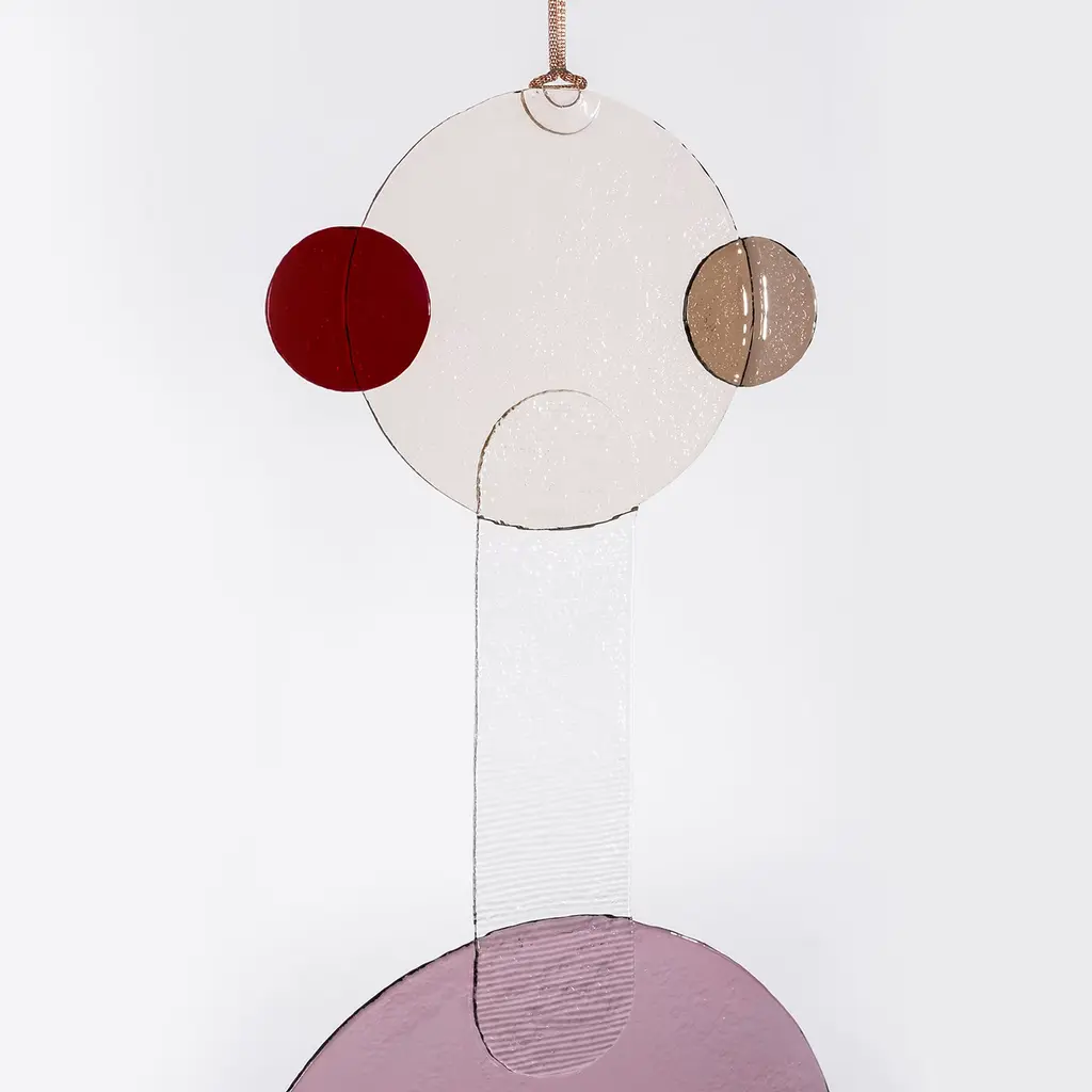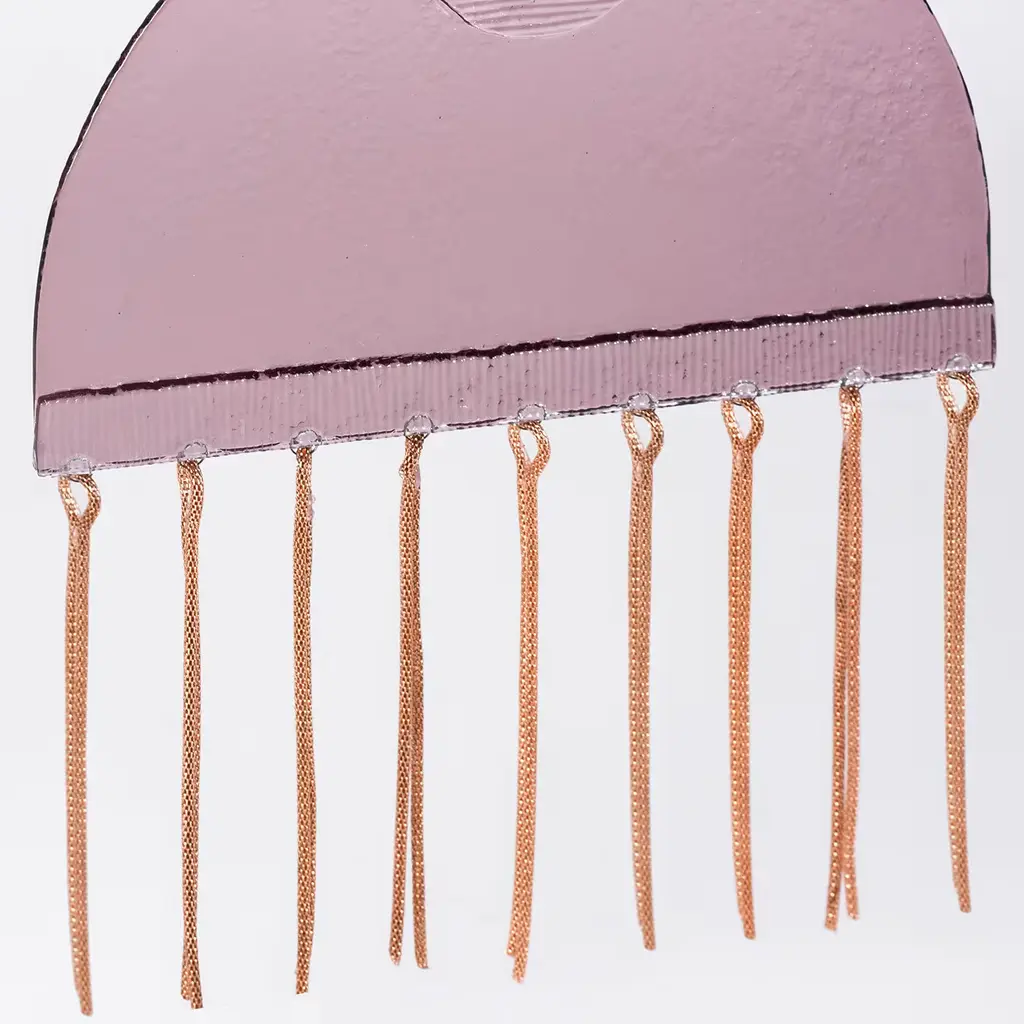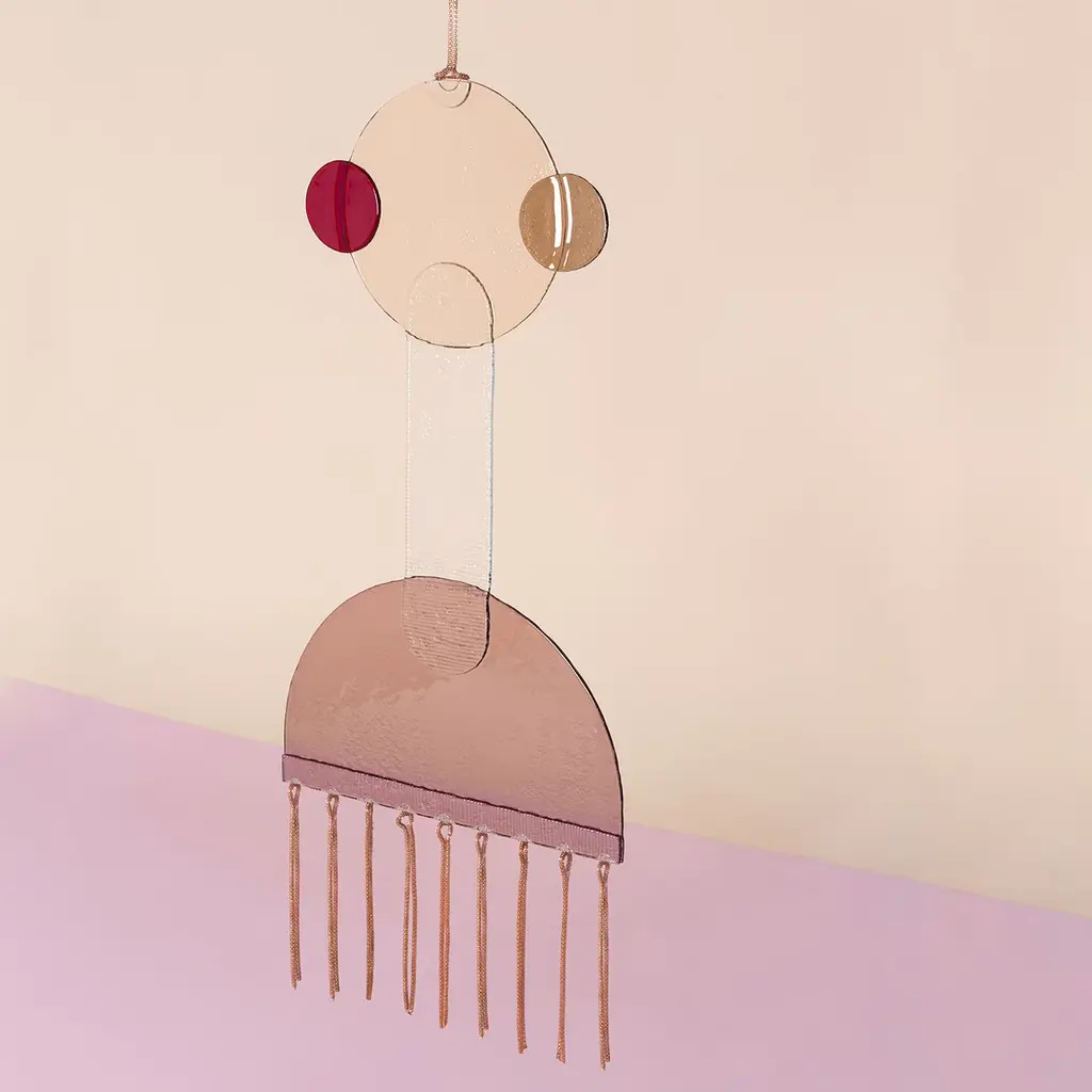 This unique Serena Confalonieri glass fusion and metal amulet speals of love through black magic symbolism. The object is in the form of a voodoo doll, in pink, transparent and earthy colours, and has steel chain decorations. Although seemingly fragile, the piece is extremely resistant, symbolising the strength of love.