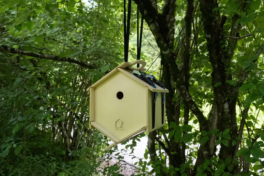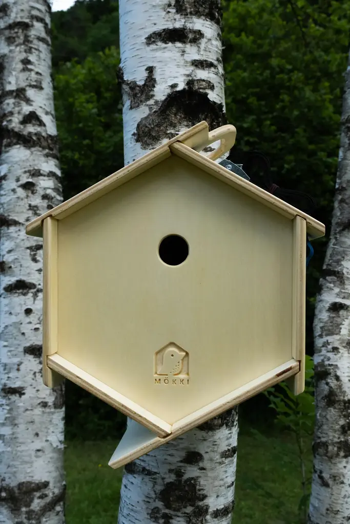 Mökki - hexagonal birdhouse by ulap design is a birdhouse with a nordic and minimalist design. Ideal for gardens and green spaces, this house offers a safe haven for birds, enriching the natural environment with a touch of originality. the products in the mökki by ulap design collection allow you to take concrete actions to protect biodiversity. In fact, with these eco-friendly houses and feeders you support local fauna and you are committed to helping the ecosystem stay in balance. To do this, we don't just provide you with an outdoor furniture product. by purchasing a product from the mökki collection by ulap design, in fact, you have access to a website entirely dedicated to the protection of biodiversity with advice and ideas for taking care of birds, insects and local plants with the help of houses and feeders. dimensions: 40 cm (height), 31 cm (width), 25 cm (depth) weight: 1,680 kg (house) | 0.450 kg (house support / if purchased separately) materials and design: - birch plywood from safe/certified sources, coating: vegetable oil, water-based exterior enamel (only for colored products) - brass hole covers on the bottom shelf features and plus: - eco-friendly: 100% recyclable, without the use of small metal parts, assembled with black straps. - versatility: hang it from a branch with the straps or from various surfaces with the stand / house holder (sold separately). ___ sustainability we love and respect nature, protecting the environment throughout the process of creating our products. This is why we measure the carbon footprint of each of our products and are committed to reducing it every day. We have big goals to support and promote sustainability. And we want you to join us on this journey. information on sustainability - 4.59 kg of co2 were emitted to create this product - for every purchase we will plant a tree in your name in our forest thanks to our partner tree nation - 100% plastic-free, reusable and recyclable packaging - handmade in italy from wood coming from safe and certified sources
