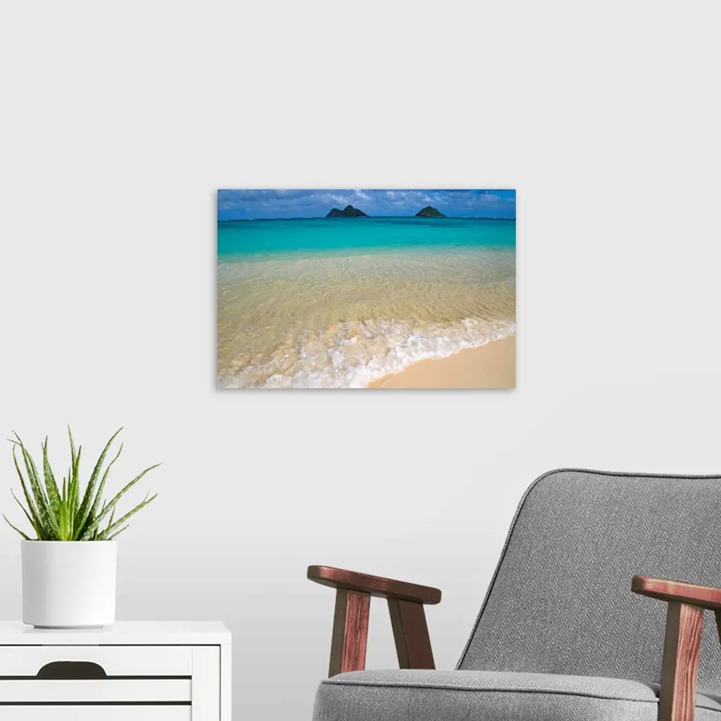 Mokulua Islands From Lanikai Beach wall art for home and office decor. Discover canvas art prints, photos, mural, big canvas art and framed wall art in GreatBigCanvas.com's varied collections.
