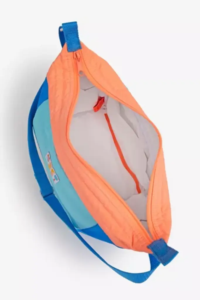 Stay chill with our medium sized Cooler Bag! Great for trips to the beach, picnics, music in the park, or bringing a lunch & snacks to the office! Features 4 interior side pockets where you can store an ice pack or utensils. A hidden bottom zipper pocket lets you tuck away your ice pack so you can cool your food from underneath without the pack directly touching your food. **Content + Care** \- 100% Nylon \- Spot Clean \- Made in USA **Size** \-Top width- 16" Bottom width- 10" 9" height x 8" depth, 6oz