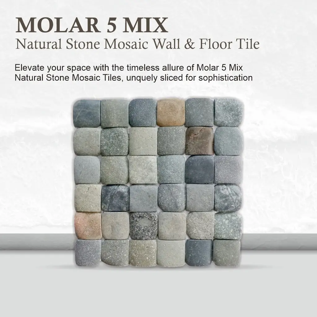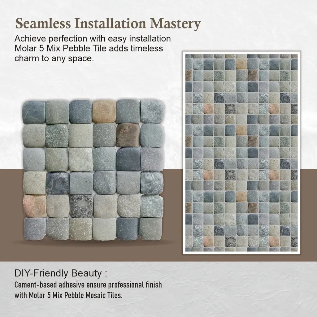 Molar 5 Mix Pebble Mosaic Tiles For Backsplash Kitchen And Bathroom Wall (12" X 12") 5 Tiles Per Case - Case (5 Tiles) - Case (5 Tiles)